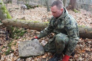 To kolejna w tym rejonie ciekawostka, która czeka na rozwikłanie. Znalezisko znajduje się niedaleko cmentarza rodowego książąt z rodu Schleswig-Holstein, właścicieli dóbr przemkowskich od połowy XIX wieku, którego uporządkowaniem miłośnicy lokalnej historii zajmują się od zeszłego roku. Obecnie dojście do tego miejsca wymaga wysiłku, po zeszłorocznych orkanach, bo drogi nadal zawalone są drzewami. Ale członkowie Stowarzyszenia, którzy mają wsparcie Dolnośląskiego Zespołu Parków Krajobrazowych, chcą dokończyć, to co rozpoczęli.