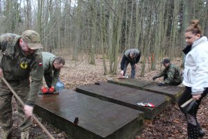 – Na cmentarzu rodowym czyścimy kamienne płyty nagrobne, a także teren wokół nich – mówi Marcin Jednoróg. – Chcemy też ogrodzić to miejsce.