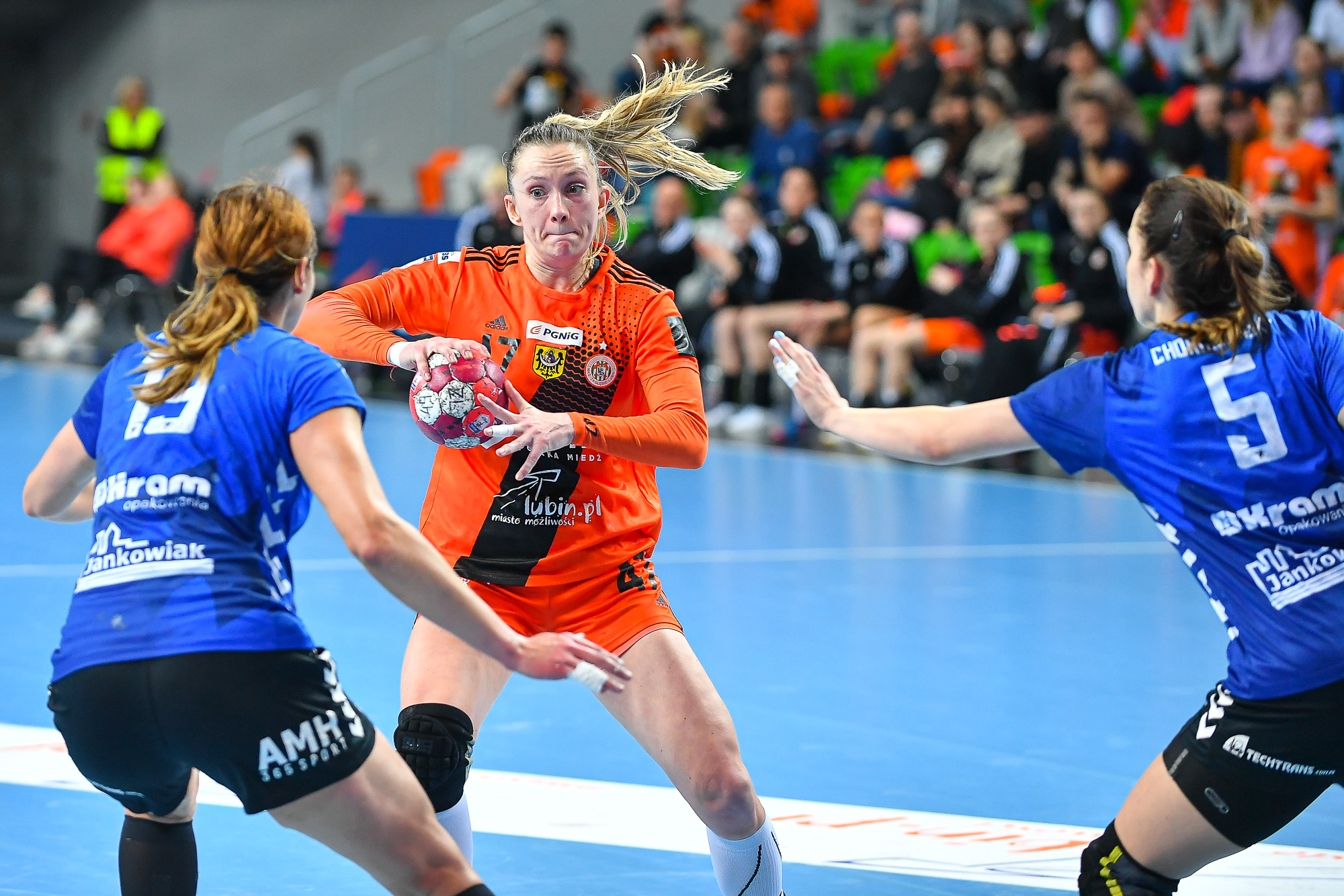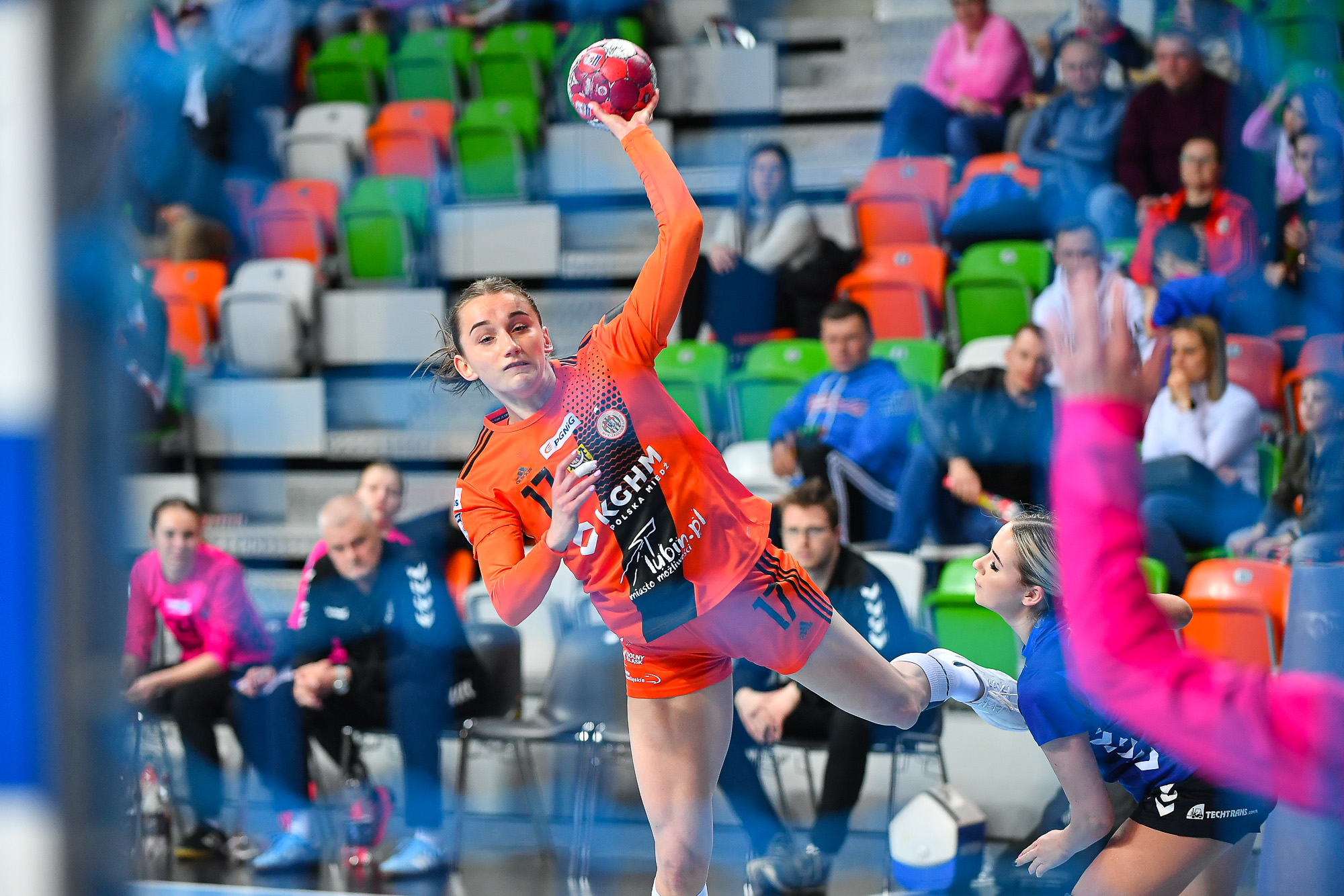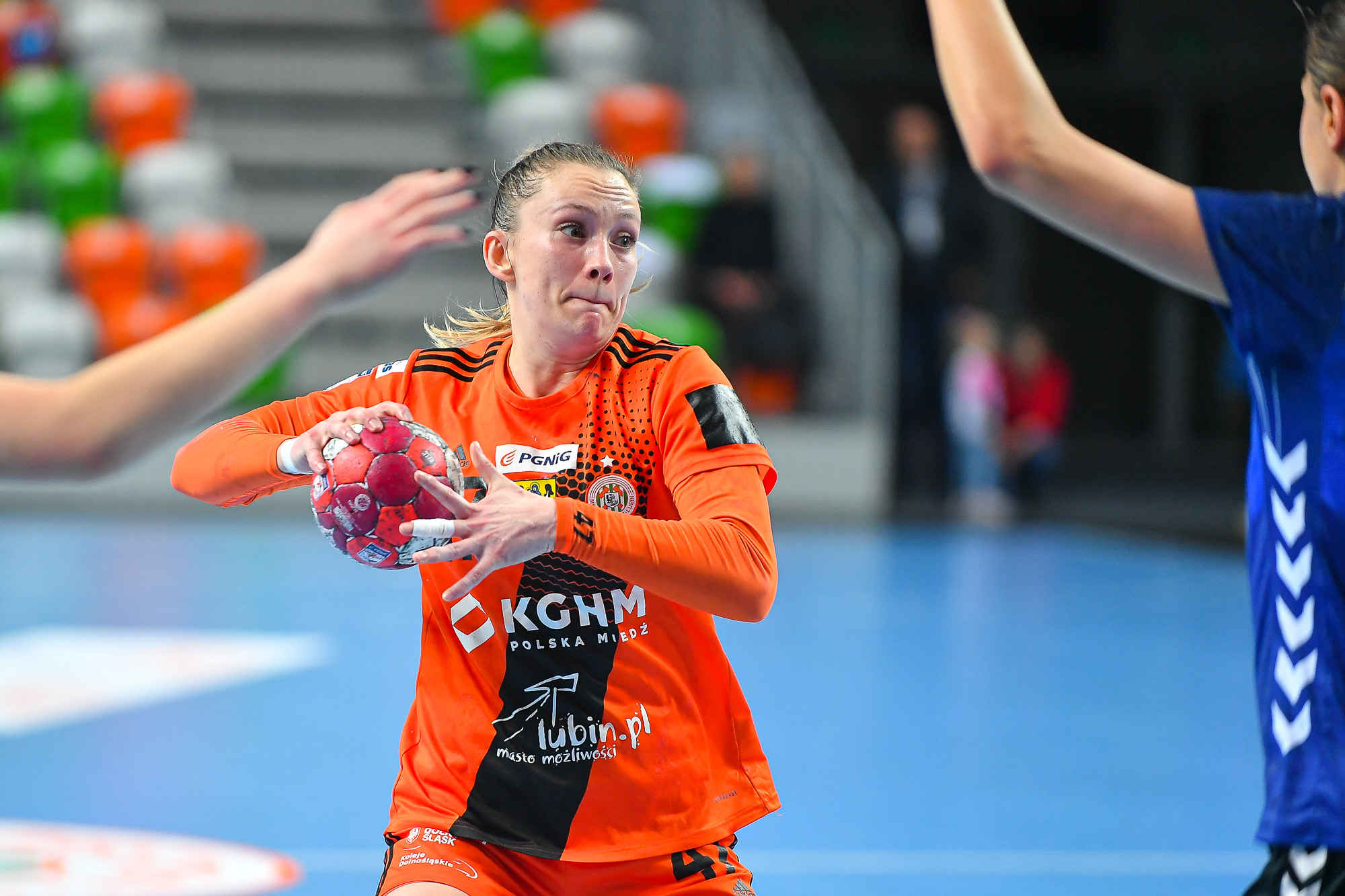 Druga połowa to już zdecydowana przewaga mistrzyń Polski. Zagłębie od początku drugiej połowy zdominowało rywalki i szybko powiększało swoją przewagę z pierwszej połowy. Kolejny mecz lubinianki nie tylko grały dobrze w obronie, ale też skutecznie w ataku, gdzie większość zawodniczek miało 100-procentową skuteczność. Podopieczne Bożeny Karkut i Renaty Jakubowskiej wygrały we własnej hali pewnie siedmioma trafieniami.
