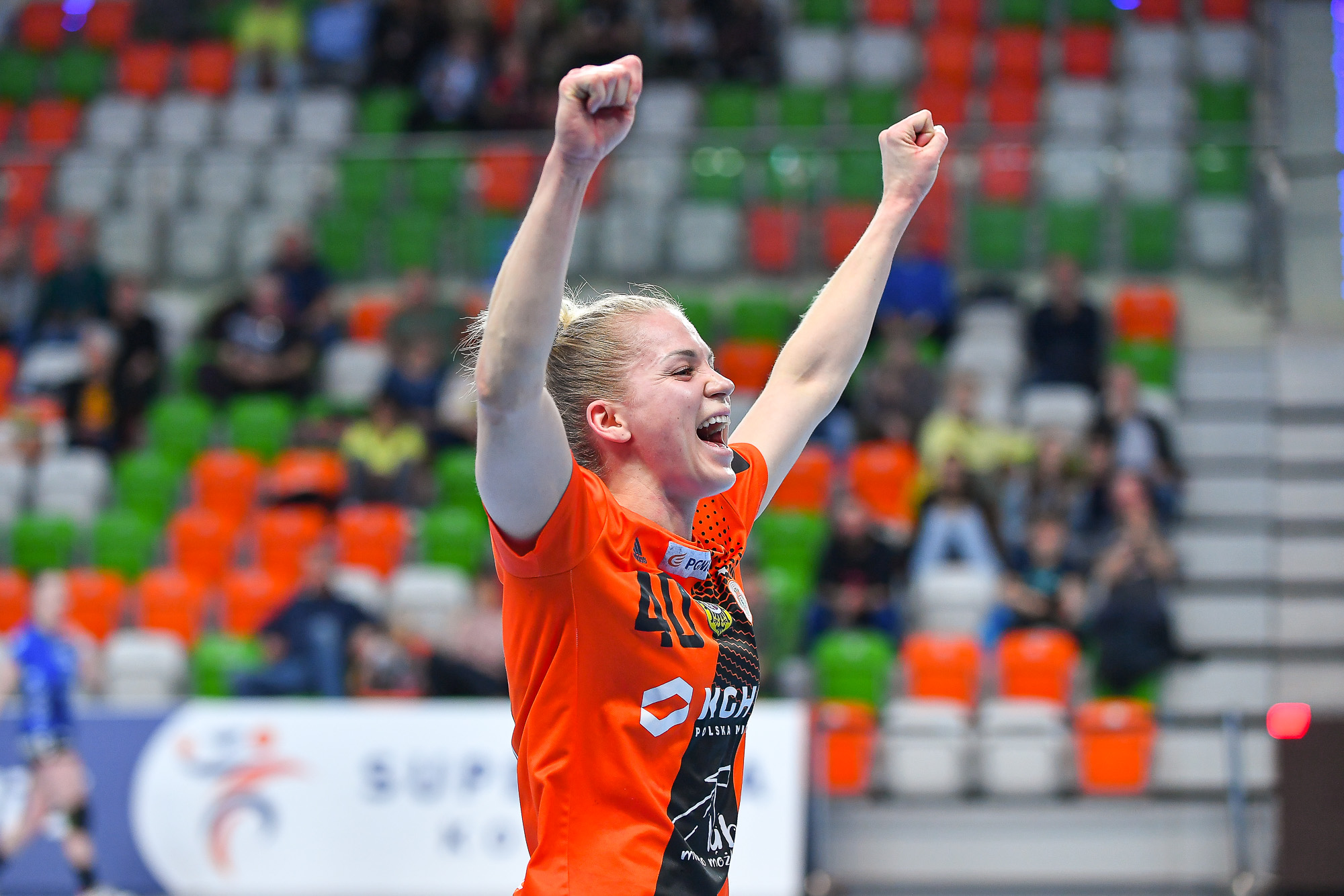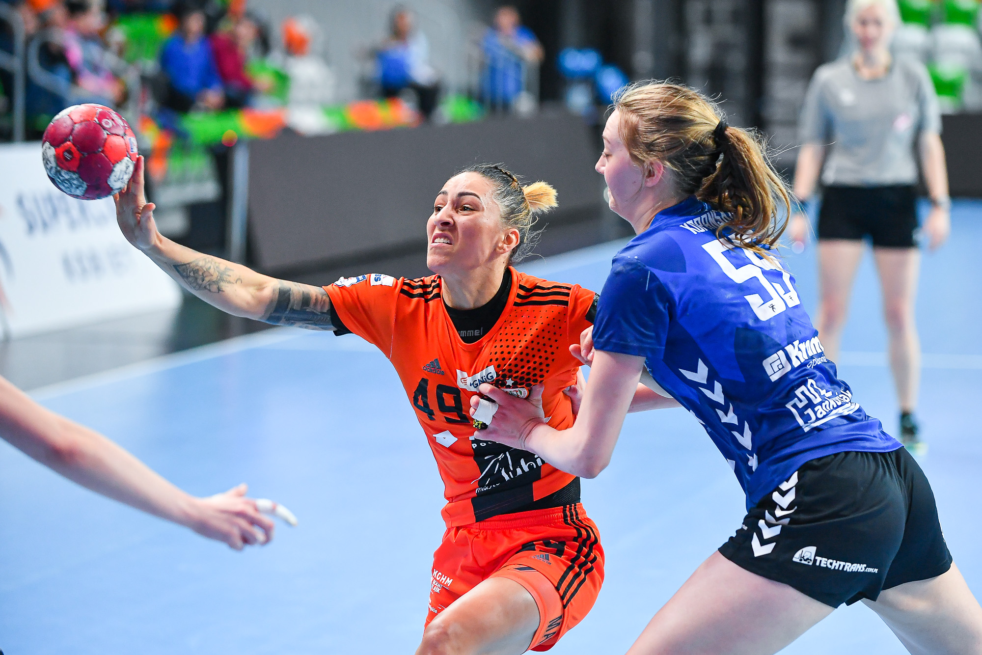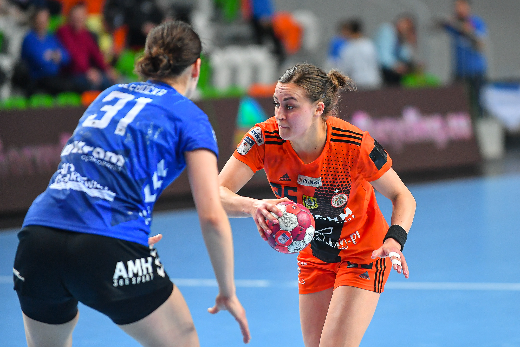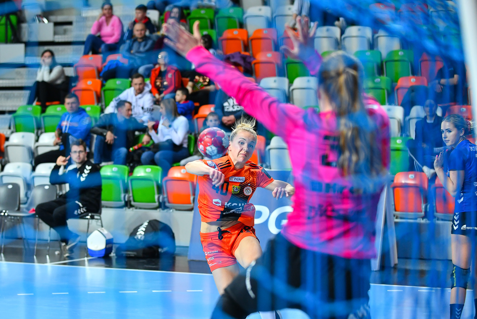 Druga połowa to już zdecydowana przewaga mistrzyń Polski. Zagłębie od początku drugiej połowy zdominowało rywalki i szybko powiększało swoją przewagę z pierwszej połowy. Kolejny mecz lubinianki nie tylko grały dobrze w obronie, ale też skutecznie w ataku, gdzie większość zawodniczek miało 100-procentową skuteczność. Podopieczne Bożeny Karkut i Renaty Jakubowskiej wygrały we własnej hali pewnie siedmioma trafieniami.