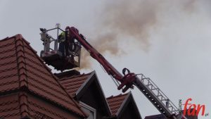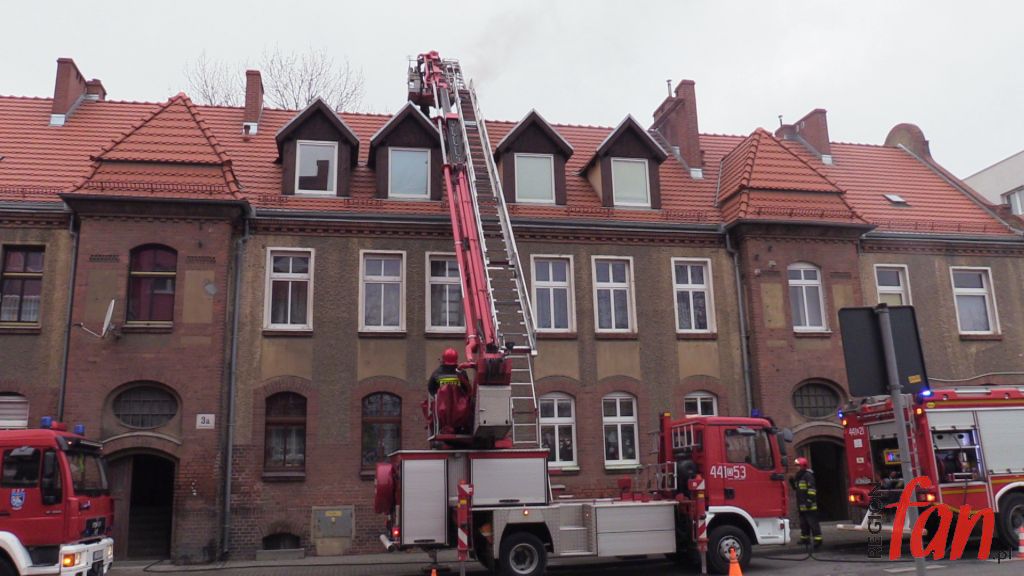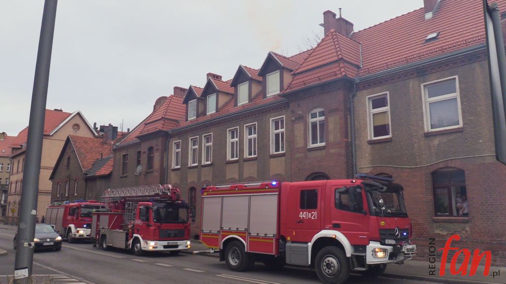 Dziś o płonącym kominie straż została powiadomiona kilka minut przed godz. 14. Na miejsce zdarzenia pojechały dwa zastępy ratowników oraz podnośnik z drabiną. Strażacy udrożnili płonący przewód kominowy i użyli pyłu wodnego do gaszenia ognia.