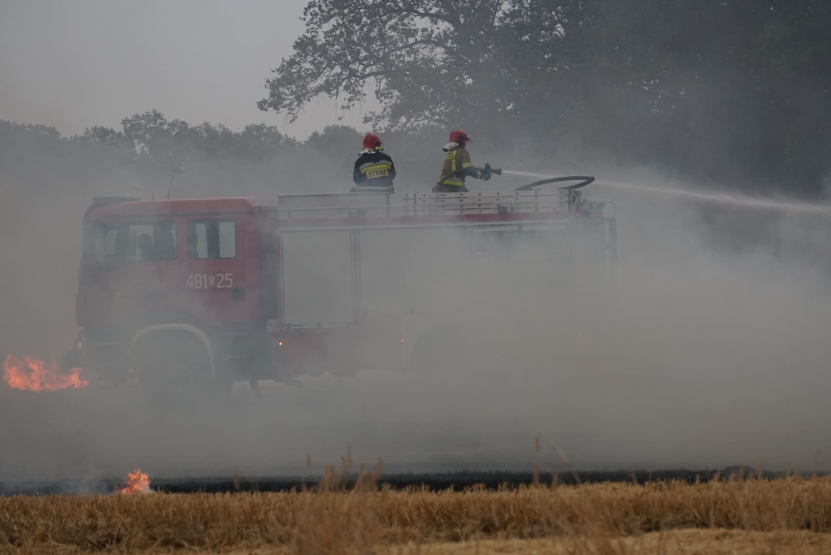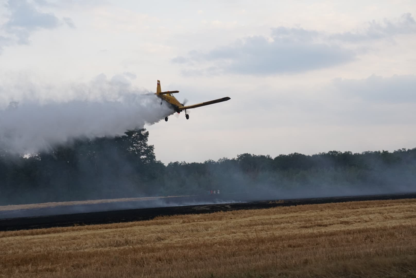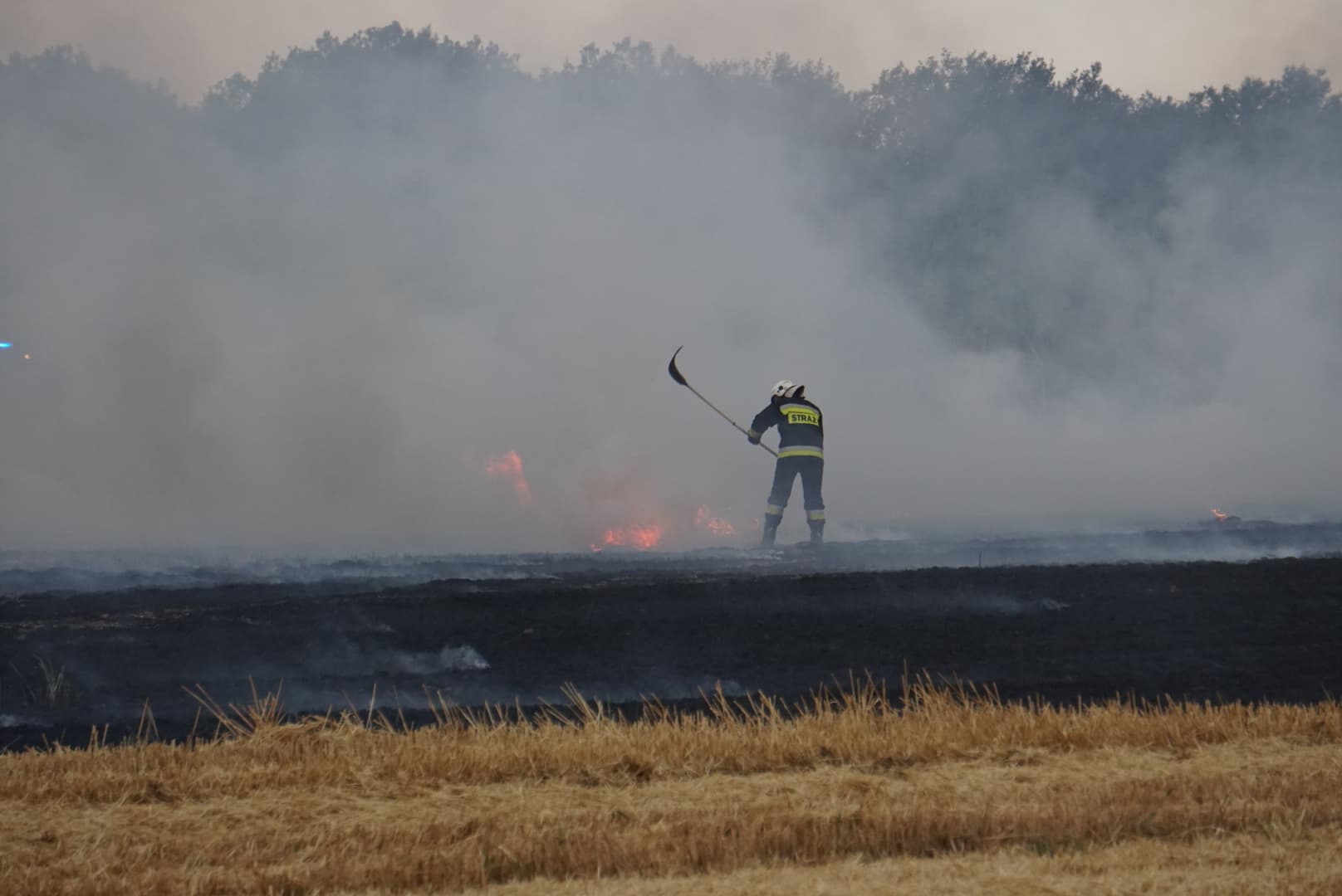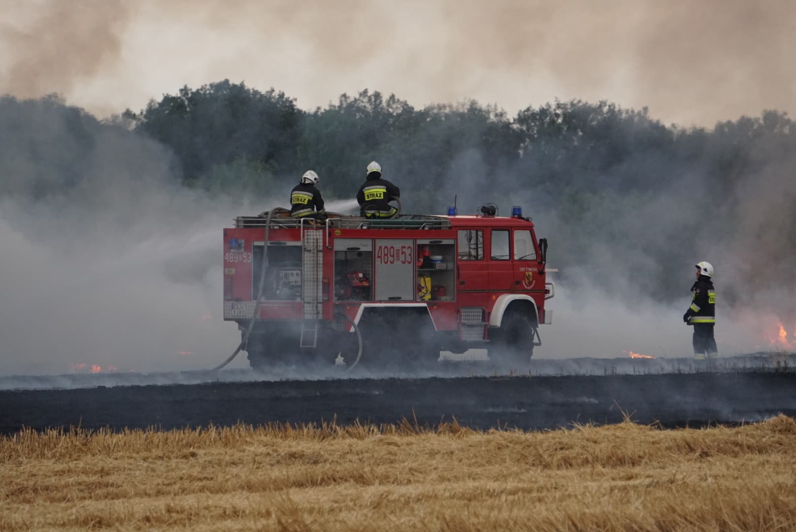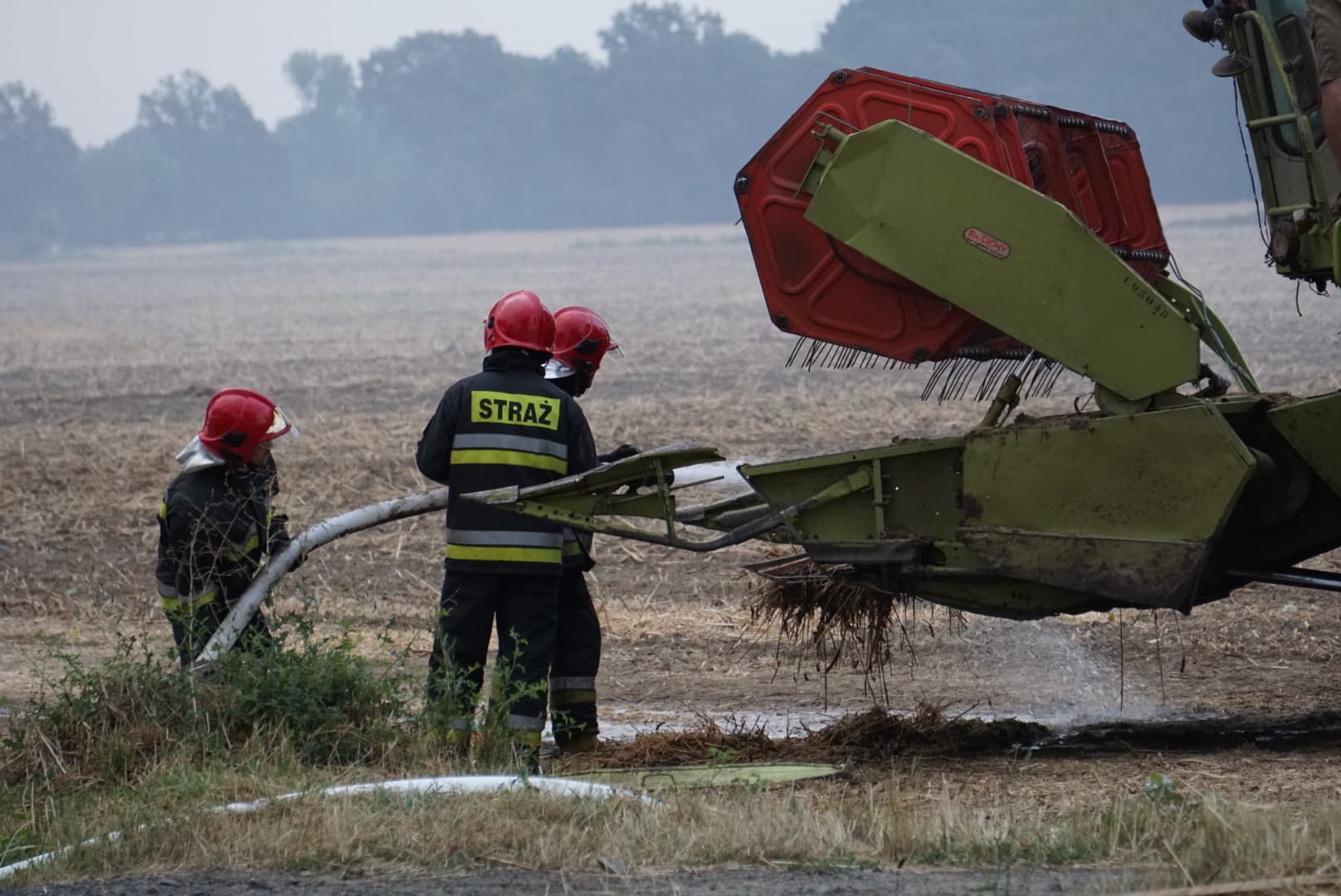 Pożar wybuchł około godziny 19. Zapalił się kombajn, a pożar objął również ściernisko. Spłonęło około 10 hektarów. Do akcji zadysponowano sześć zastępów straży. Pomoc nadeszła też z powietrza, bowiem na ratunek przyleciał samolot gaśniczy.