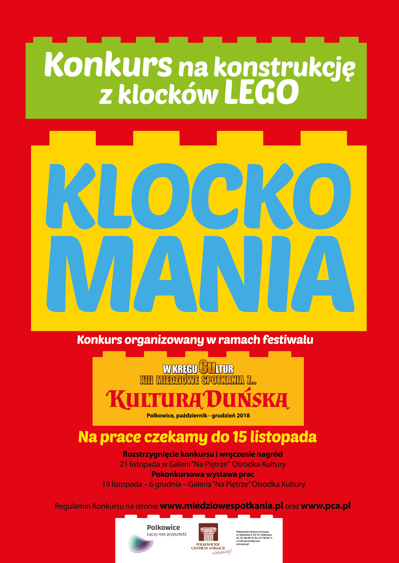 W ramach Festiwalu “W Kręgu CUltur. XIII Miedziowe Spotkania z Kulturą… Duńską” Polkowickie Centrum Animacji organizuje konkurs na konstrukcję z klocków LEGO pn. „KLOCKOmania”.