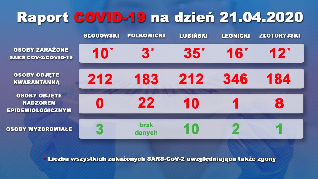 Od pierwszego dnia, w którym wykryto w Polsce koronawirusa, minęło już ponad półtora miesiąca. Od tego czasu liczba nosicieli wrosła do 9856. Jak poinformowało Ministerstwo Zdrowia wśród zmarłych dziś wskutek koronawirusa nie ma Dolnoślązaków. Większości ofiar towarzyszyły choroby współistniejące. Ostatniej doby wykonano 10,1 tys. testów.