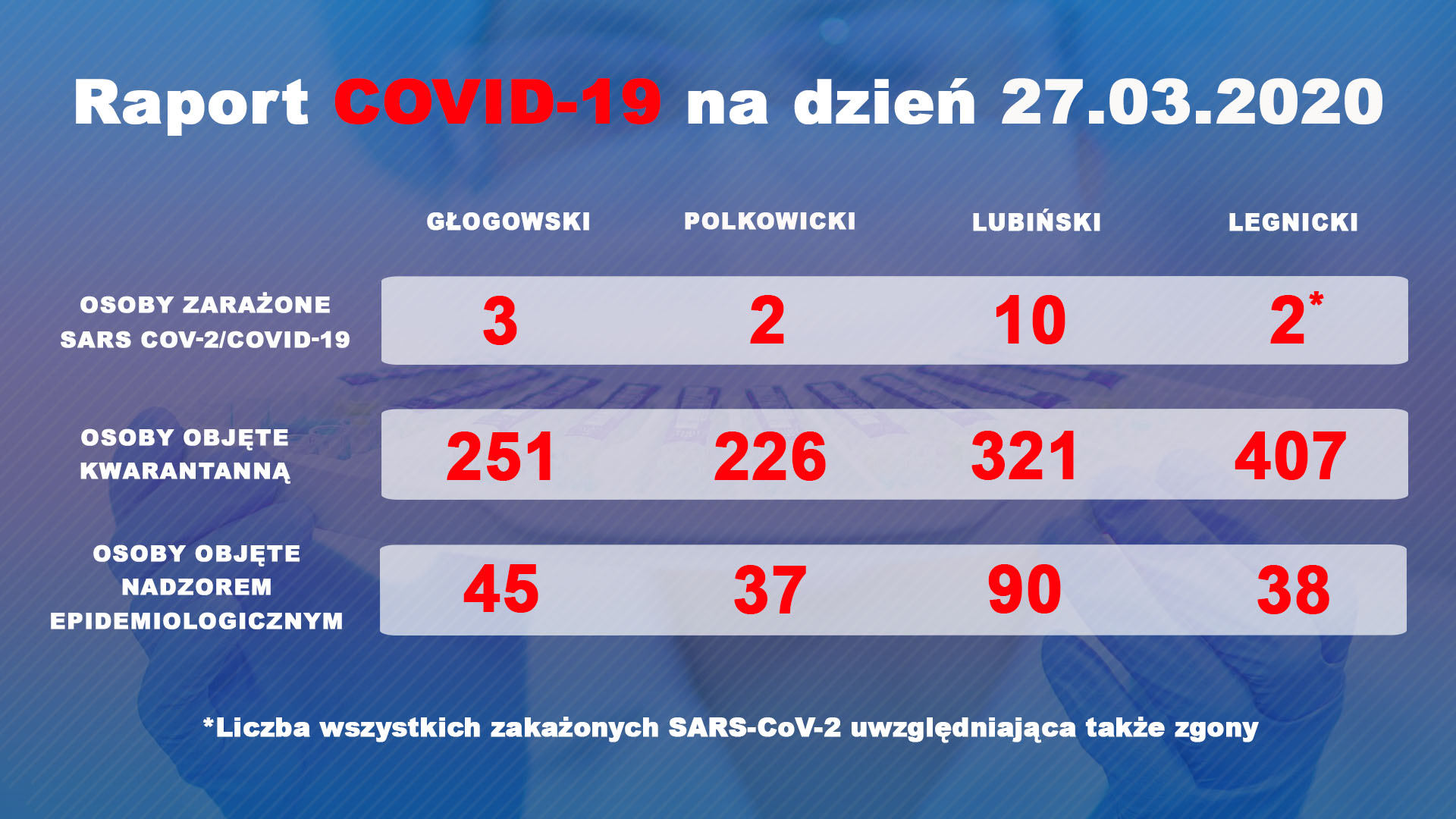 W całym kraju odnotowano w piątek 168 nowych zakażeń i obecnie liczba zarażonych wynosi 1389. Przypomnijmy, że do tej pory na chorobę zmarło 16 Polaków. Jak dotąd powiat złotoryjski i jaworski pozostają jedynymi powiatami w naszym regionie, gdzie nie odnotowano jeszcze przypadków koronawirusa.