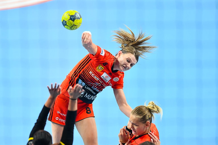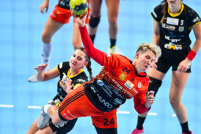 Pierwsza bramka dla Metraco Zagłębia w nowym sezonie padła po składnej akcji, wykończonej przez Małgorzatę Trawczyńską. Szybko odpowiedziała Natalia Najdek. W siódmej minucie KPR, po bramce Sabiny Kobzar nieoczekiwanie wyszedł na prowadzenie 3:2. Przed upływem dziesiątej minuty to Miedziowe znów były na prowadzeniu. Niespełna trzy minuty później na tablicy wyników było już 8:4 dla lubinianek, a swoją pierwszą bramkę w oficjalnym meczu dla Metraco Zagłębia zdobyła Patricia Matieli. Licznik przyjezdnych zatrzymał się na czterech trafieniach, tymczasem miejscowe zdobywały kolejne bramki i „uciekały” rywalko. Po kwadransie o czas dla KPR-u poprosił Michał Pastuszko. Jeleniogórzanki w końcu się przełamały, ale w czasie, kiedy zdobyły bramkę Miedziowe trafiały czterokrotnie i znów powiększyły swoją przewagę – 11:5 w 21. minucie. Pięć minut później było już „dychą” dla podopiecznych Bożeny Karkut i Renaty Jakubowskiej. Do przerwy mieliśmy 19:7, a aż dziesięć bramek padło łupem duetu Grzyb-Trawczyńska.