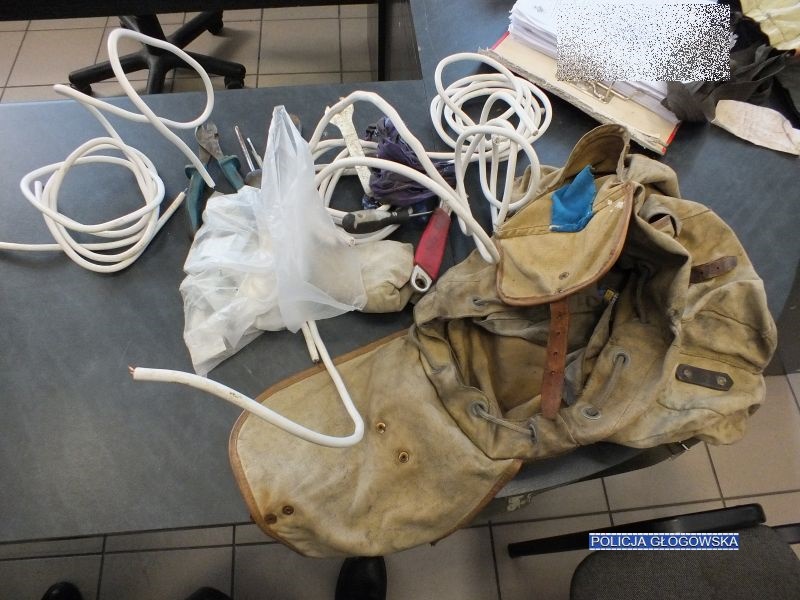 – Patrol natychmiast podjął czynności i zatrzymał dwóch mężczyzn, którzy na widok policjantów usiłowali uciekać. Policjanci zabezpieczyli również kable elektryczne oraz metalowe części, które zamierzali skraść. Sprawcy mieli przy sobie między innymi siekierę i narzędzia służące do kradzieży – relacjonuje Bogdan Kaleta z głogowskiej policji.