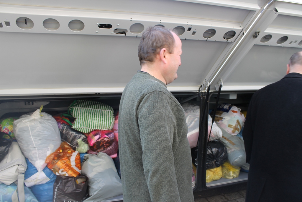 IMG_0593Czekają już tylko na zgodę ukraińskiego ministerstwa, by móc bez przeszkód przewieźć przez granicę dary dla uciekinierów z objętych wojną terenów wschodniej części tego kraju. Do IV Liceum Ogólnokształcącego w Legnicy dotarł dziś transport z paczkami dla ludzi, którzy z dnia na dzień stali się bezdomni, bezrobotni, nierzadko osamotnieni rodzinnie i przyjacielsko, bez jakichkolwiek perspektyw na przyszłość.