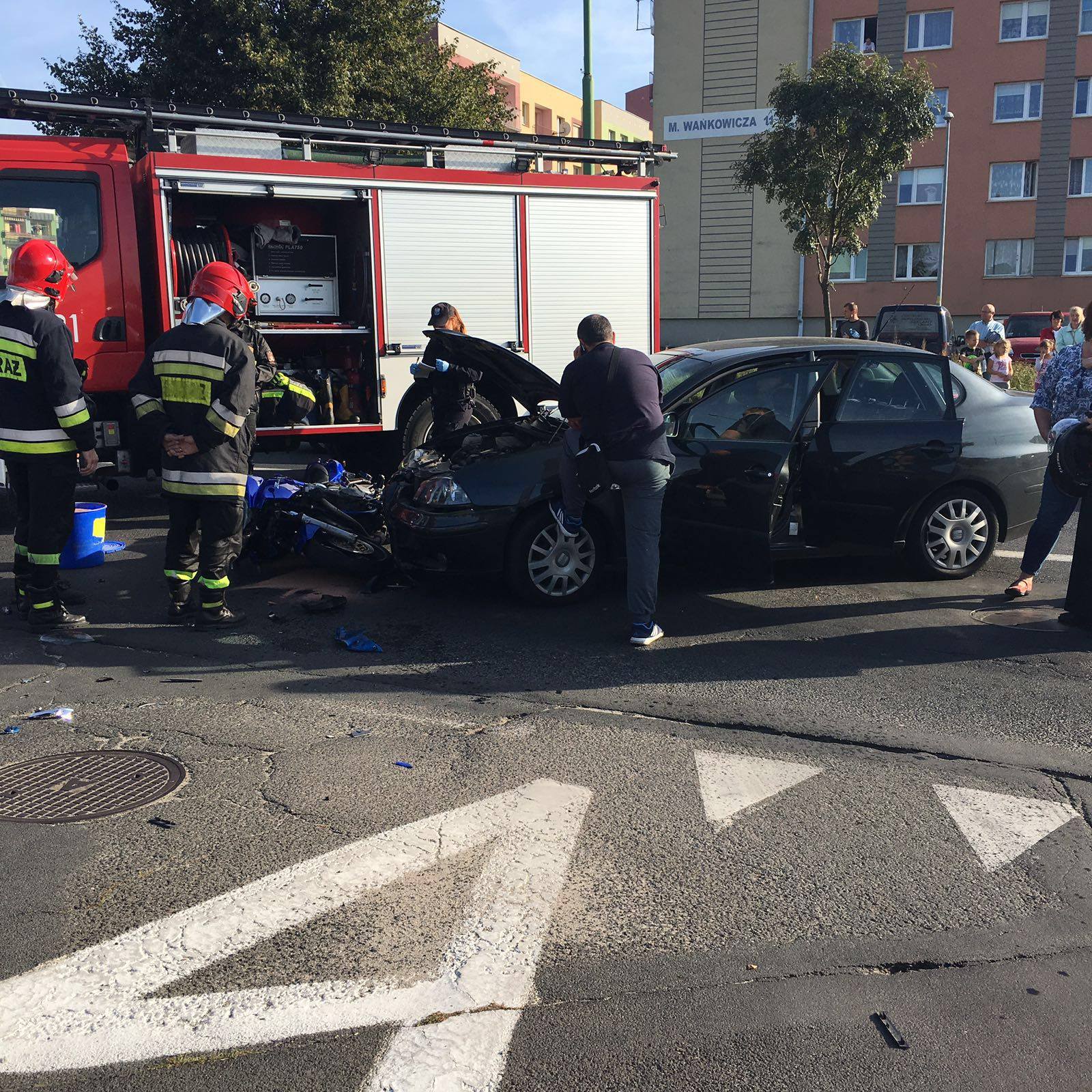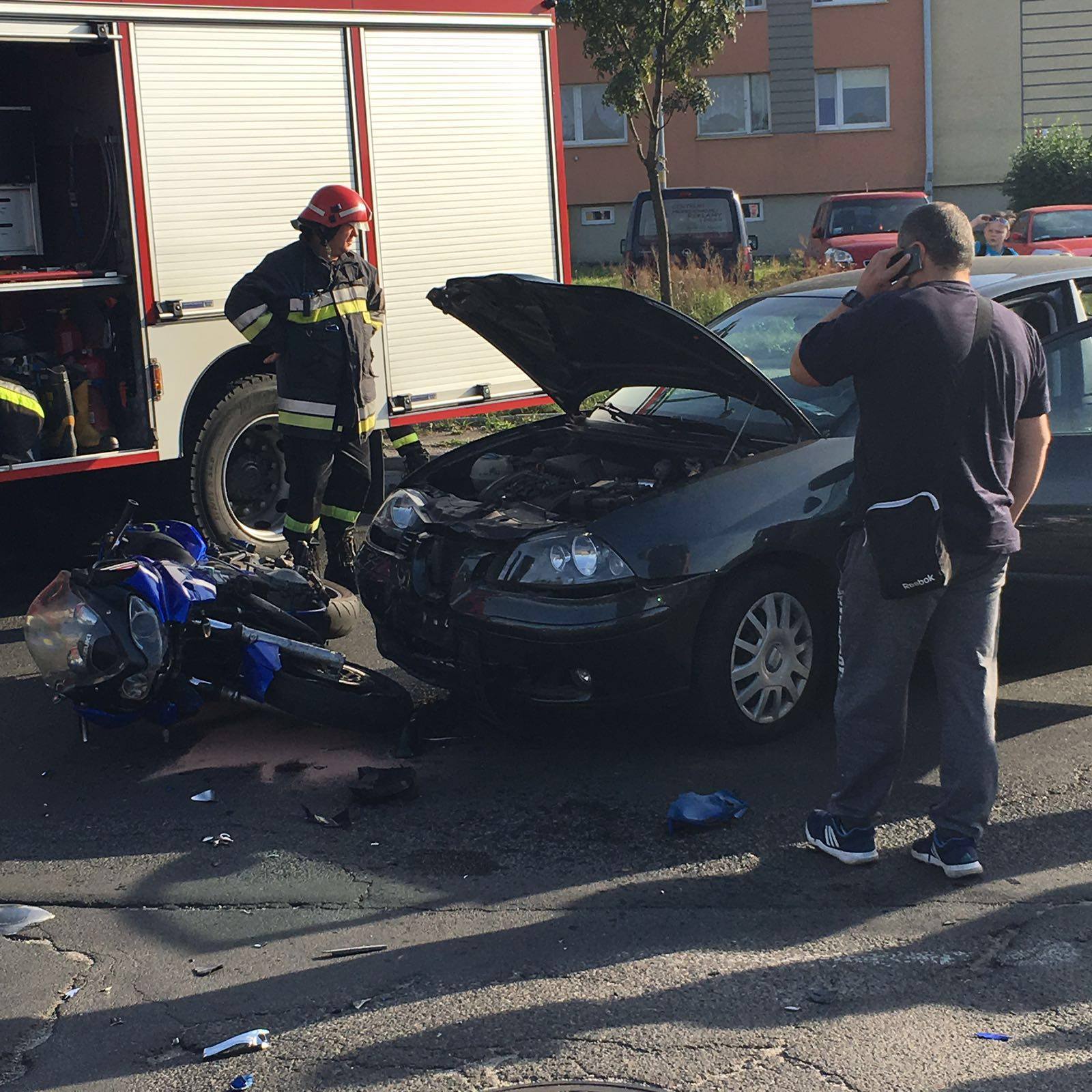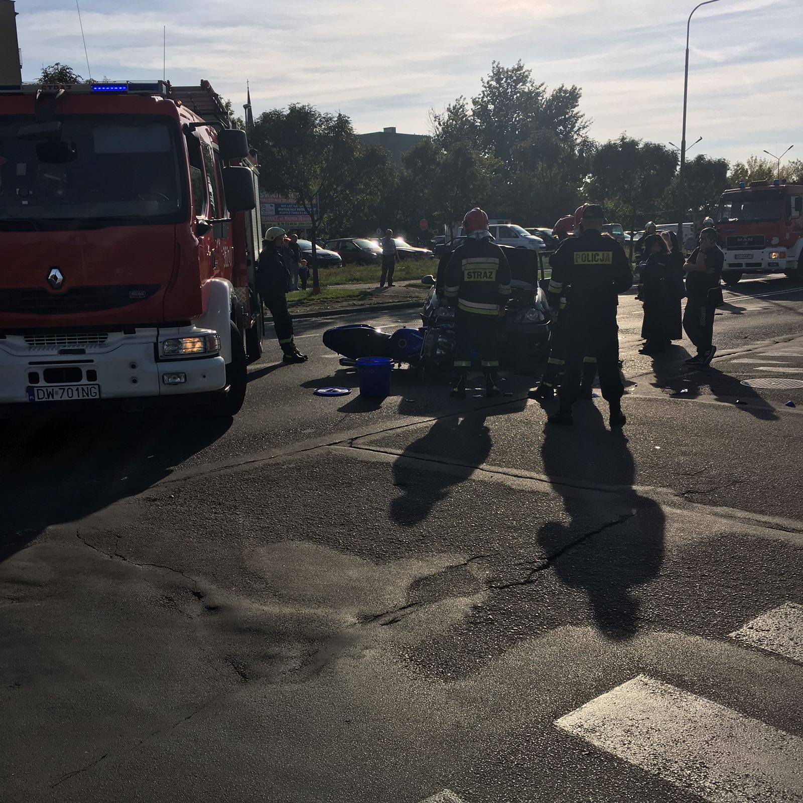 Do zdarzenie doszło po godzinie 16. Przy ulicy Iwaszkiewicza, tuż obok Wojewódzkiego Szpitala Specjalistycznego w Legnicy samochód osobowy zderzył się z motocyklem.