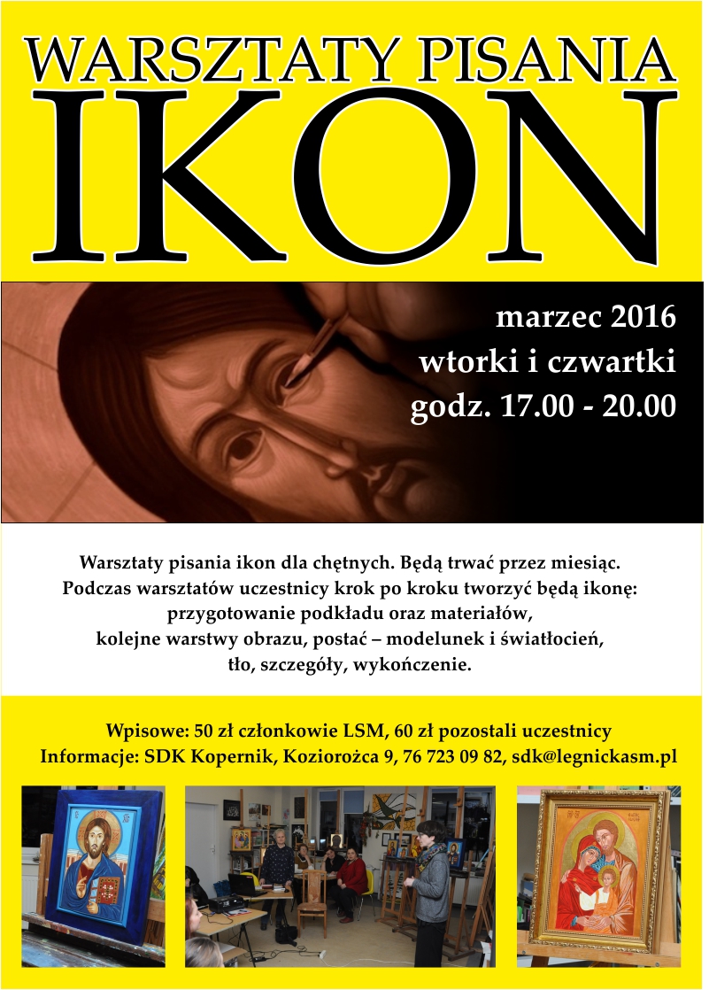 Spółdzielczy Dom Kultury Kopernik przy ul. Koziorożca zaprasza do udziału w warsztatach pisania ikon. Zajęcia ruszają od 2 marca i trwać będą do końca miesiąca.