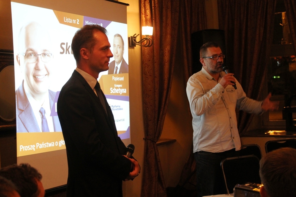 Zupełnie inną atmosferę miało wieczorne spotkanie posła Roberta Kropiwnickiego ze swymi sympatykami. W przyteatralnej kawiarni Ratuszowa pojawili się m.in. burmistrz Jawora, Emilian Bera i radna sejmiku dolnośląskiego ze Złotoryi, Jadwiga Szeląg. Był też kandydat na senatora PO, lubinianin Piotr Borys, bo – jak przyznał bohater wieczoru – obaj z Borysem są „niejako w pakiecie”. Na sali było też wielu znanych lekarzy, nauczycieli, przedsiębiorców i polityków.