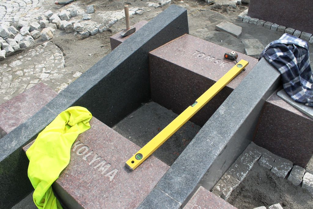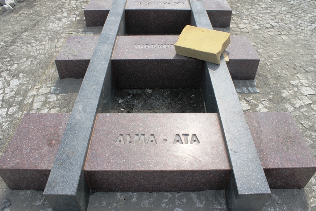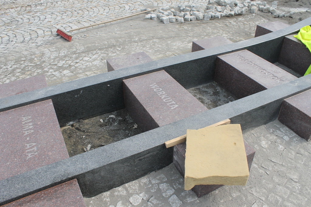 Wczoraj, jako ostatnie, przywiezione zostały kamienne bryły. Poprzednim transportem przyjechały granitowe tory i podkłady, na których wyryto nazwy miejscowości – największych skupisk zesłańczych.
