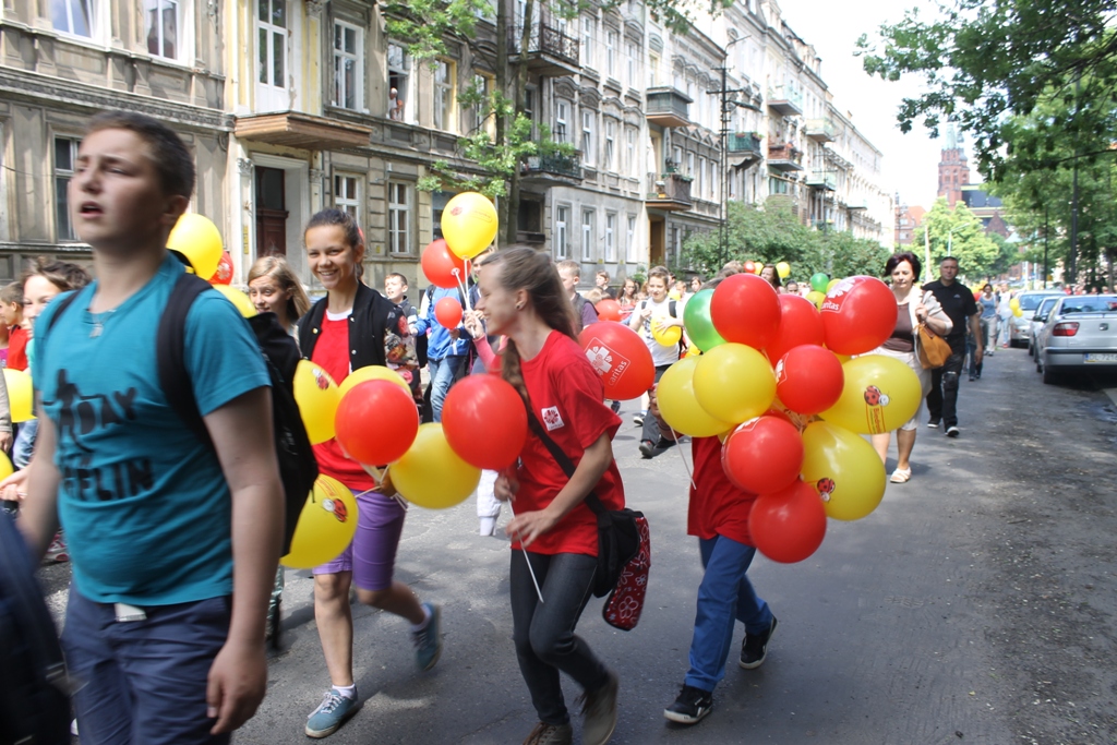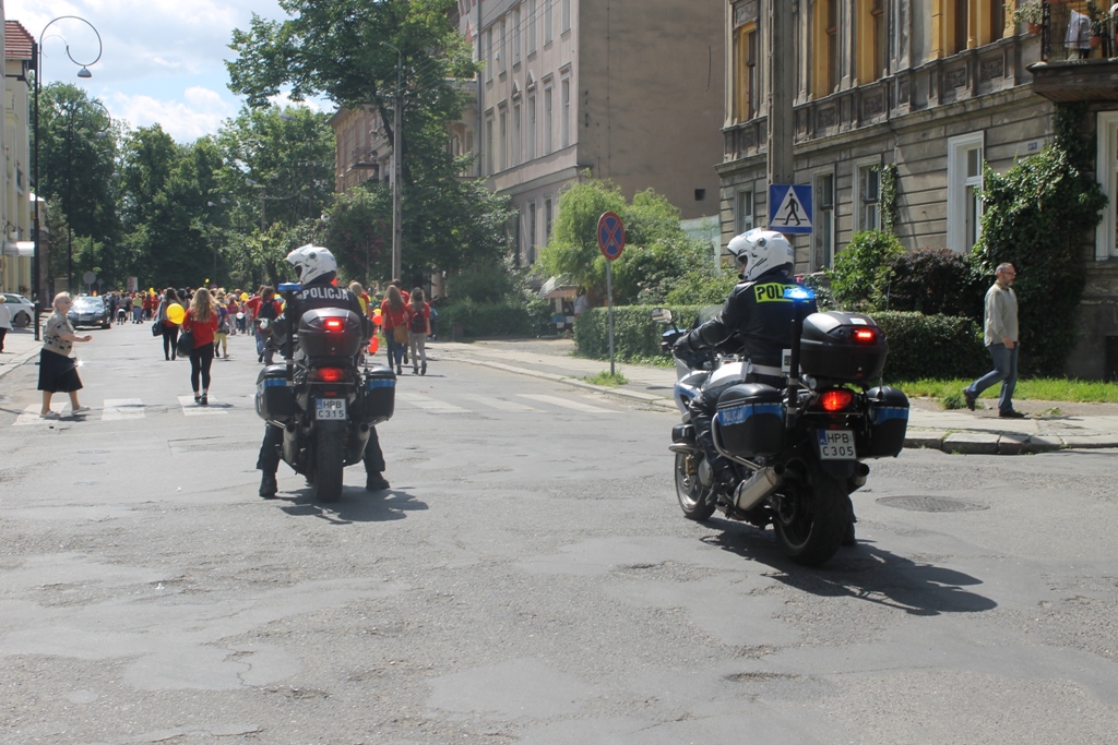 Setki, o ile nie tysiące, dzieci zablokowało dziś ruch w mieście. A wszystko za sprawą jubileuszowego Ogólnopolskiego Festynu Rodzinnego „Bądźmy razem”. Przemarsz do parku Miejskiego, gdzie zorganizowano imprezę, odbył się w asyście policjantów z wydziału ruchu drogowego, którzy – by dzieci mogły bezpiecznie dotrzeć do celu – chwilowo wyłączyli z ruchu kilka ulic na legnickim Tarninowie.