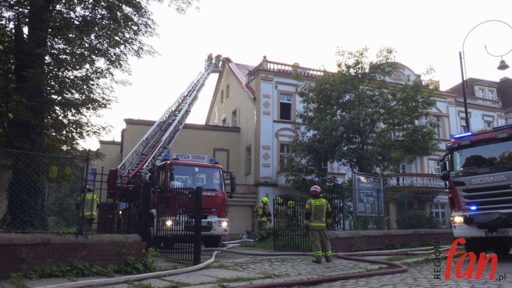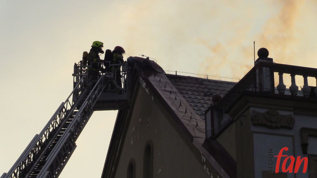 Strażacy zastali pożar poddasza w stopniu zaawansowanym. Paliły się elementy stropu pokrytego blachodachówką. Sytuację udało się szybko opanować i pożar nie rozprzestrzenił się. Na miejscu pracowały też inne służby: pogotowie energetyczne, policja i straż miejska. W zdarzeniu nikt nie ucierpiał. Ze wstępnych ustaleń wynika, że wcześniej w budynku prowadzone były prace remontowe. Możliwe, że doszło do zaprószenia ognia. Działania dziewięciu zastępów straży zakończyły się o godz. 20:05.