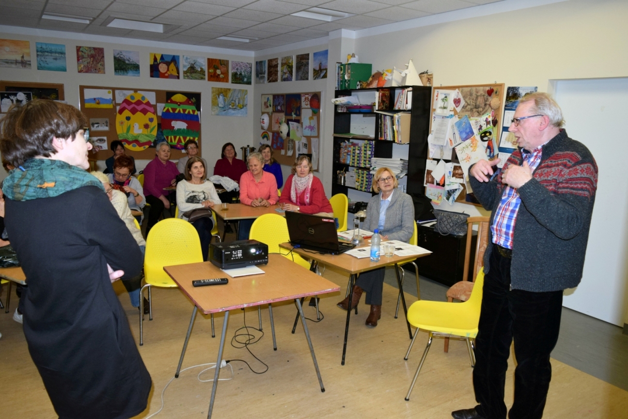„Spotkania ze sztuką” to otwarte warsztaty, dyskusje lub prezentacje na temat zagadnień związanych z teorią i historią sztuki, odbywające się w SDK Kopernik w każdy ostatni czwartek miesiąca. Prowadzą je podopieczne sekcji plastycznej dla dorosłych, działającej w Koperniku jako grupa artystyczna „Ale plama”, pod okiem artystki Jeleny Połujanowej.