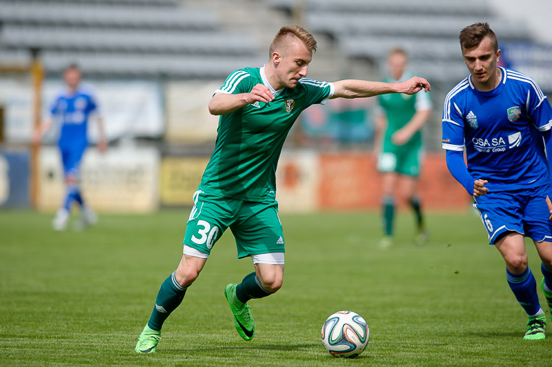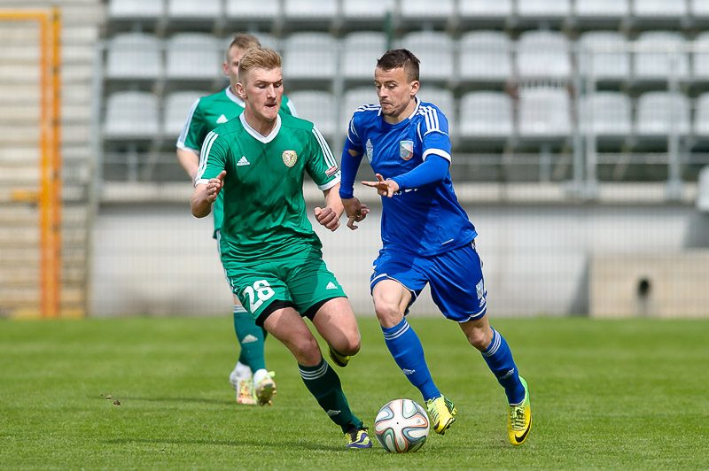 PA3_9935Miedź II Legnica ma za sobą kolejny mecz ligowy z wymagającym rywalem. Po ubiegłotygodniowym dwumeczu w Polkowicach, legniczanie podejmowali na własnym obiekcie Śląsk II Wrocław. W pojedynku drugich zespołów lepsi okazali się legniczanie, którzy swoje bramki zdobywali w końcówkach obydwu połów.