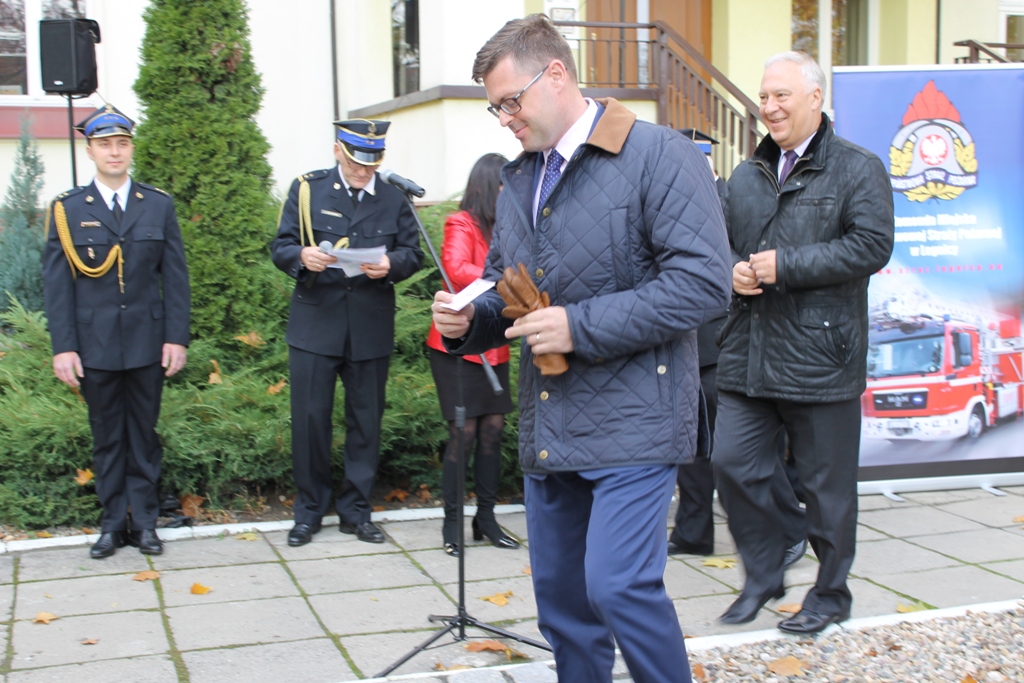 Komendant legnickiej jednostki, Adam Konieczny – dziękując sponsorom za wsparcie – przypomniał, że strażacy swą wdzięczność okazują poprzez niesienie pomocy. Ponadto podczas uroczystości nagrodą finansową wyróżniono Pawła Biszczaka – strażaka, który poza służbą uratował życie człowiekowi. Do zdarzenia doszło 26 lipca 2014 roku.
