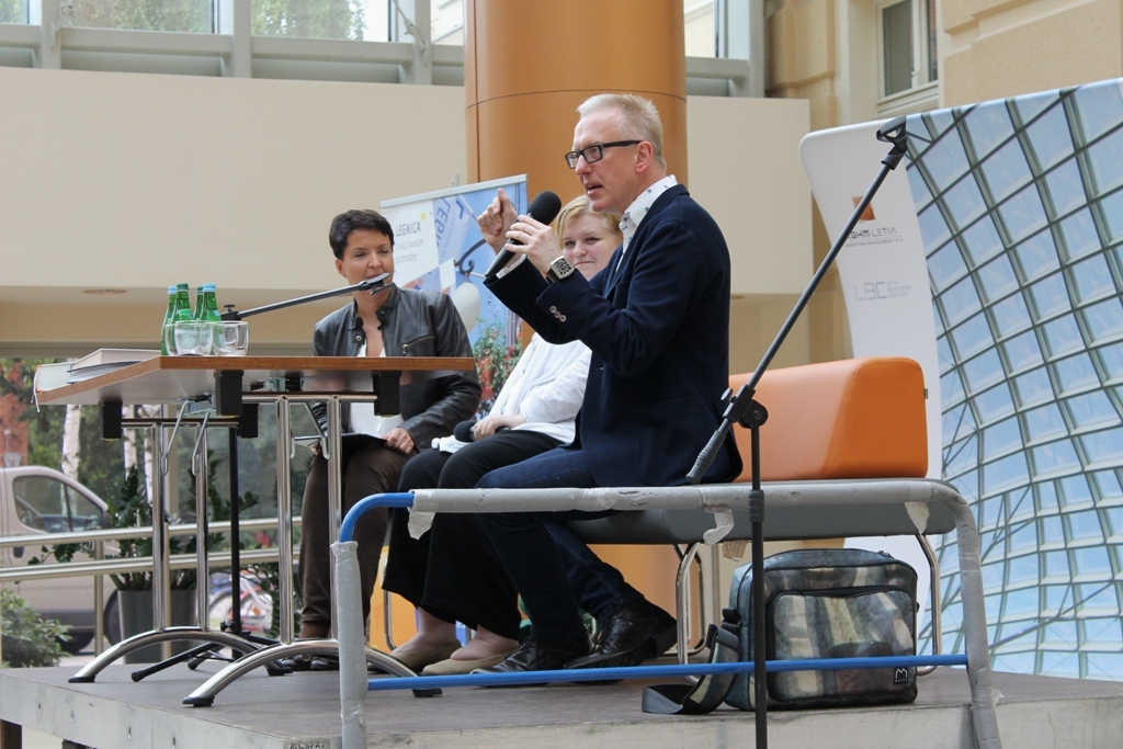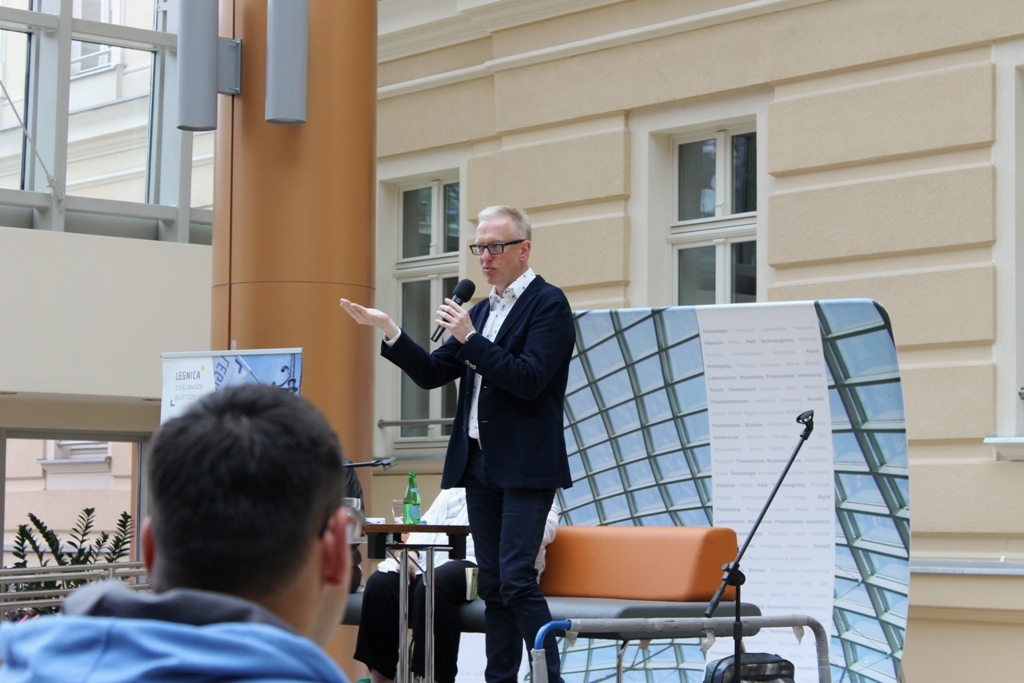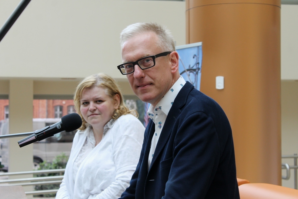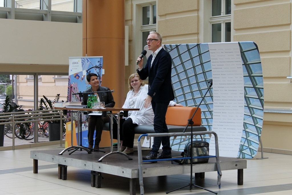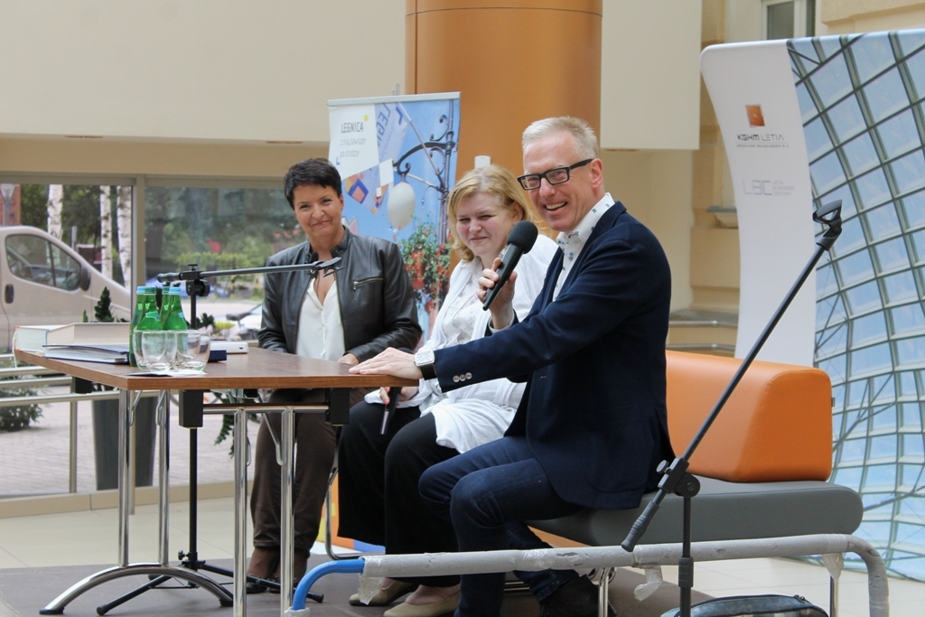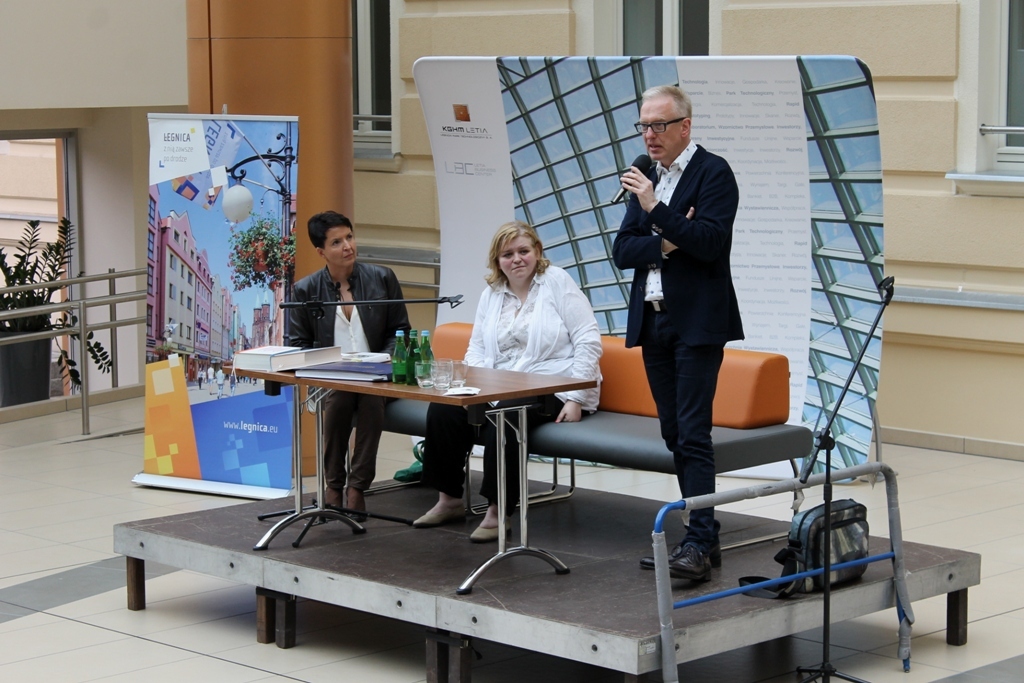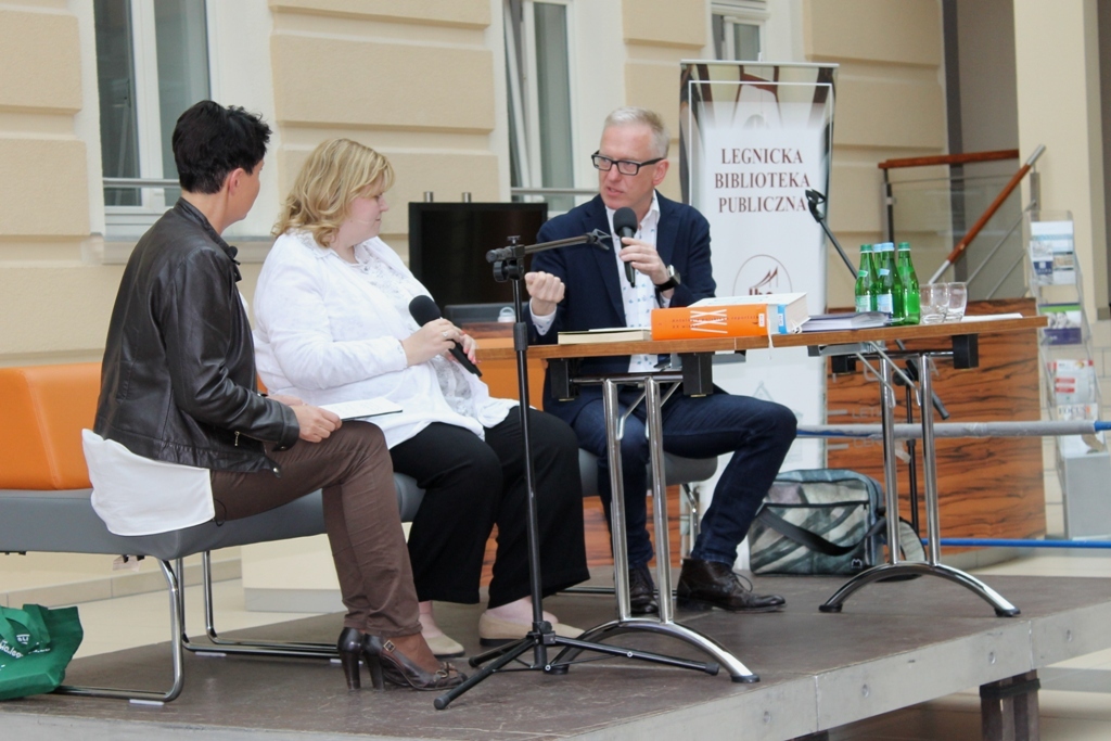 IMG_1207Pełna sala widzów czekała na dziennikarza i autora książek Mariusza Szczygła: rodowitego złotoryjanina i absolwenta Liceum Ekonomicznego w Legnicy, który odwiedził dziś biurowiec KGHM Letia. Jego czytelnicy z uznaniem i wypiekami na policzkach słuchali barwnych opowieści poświęconych naszym południowym sąsiadom. Bohater wieczoru sam nazywa się czechofilem. Spotkanie zorganizowała Legnicka Biblioteka Publiczna.