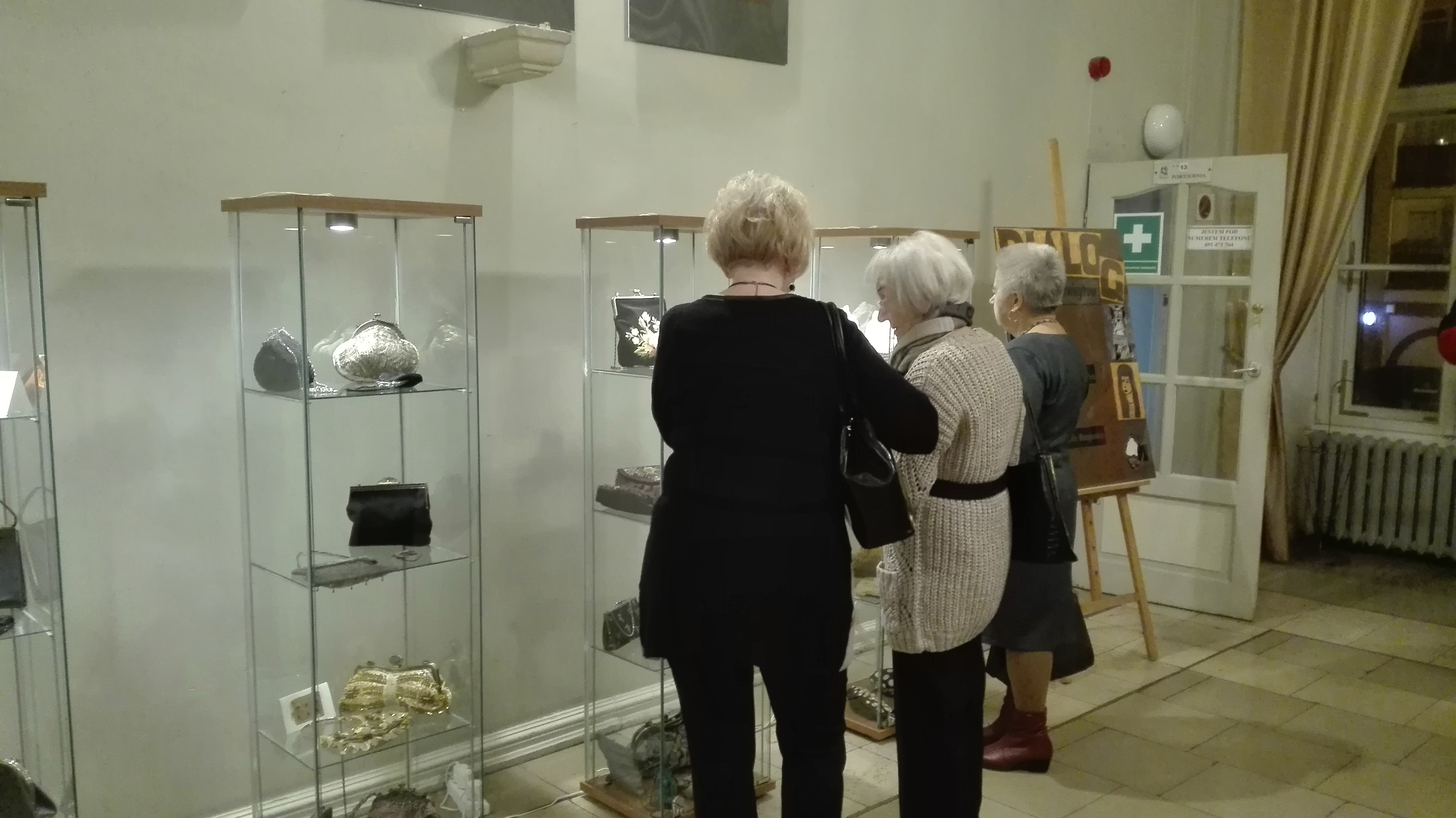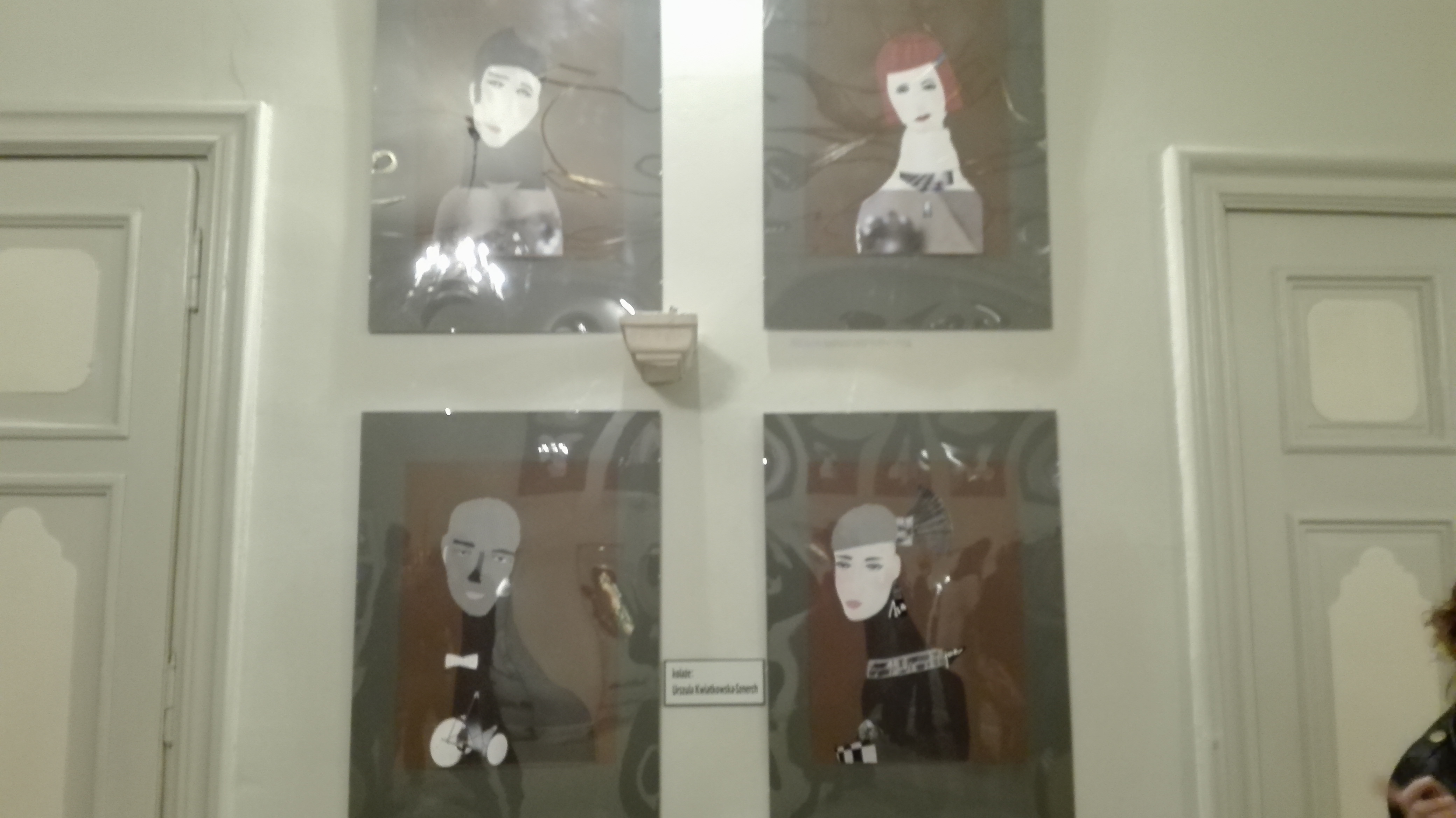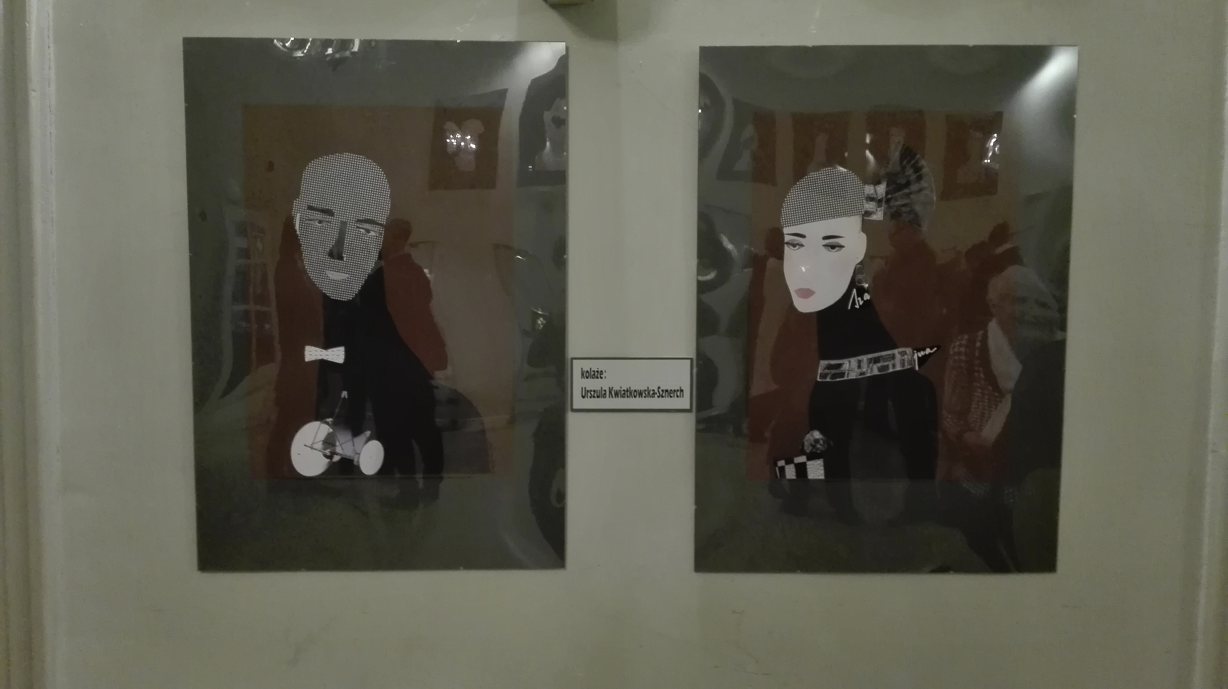 Wystawie torebek towarzyszą wywieszone na ścianie teatralnego holu kolaże. Ich autorką jest Urszula Kwiatkowska-Sznerch. Obrazy zostały powieszone według cyklów. Jeden z nich to „Czarne Anioły”, do których autorka użyła fotografii. Drugi cykl to „Bibliotekarki”, które przedstawiają cztery typy osobowości pań z biblioteki. Ostatni i najnowszy, a także najliczniejszy to „Dialogi”.