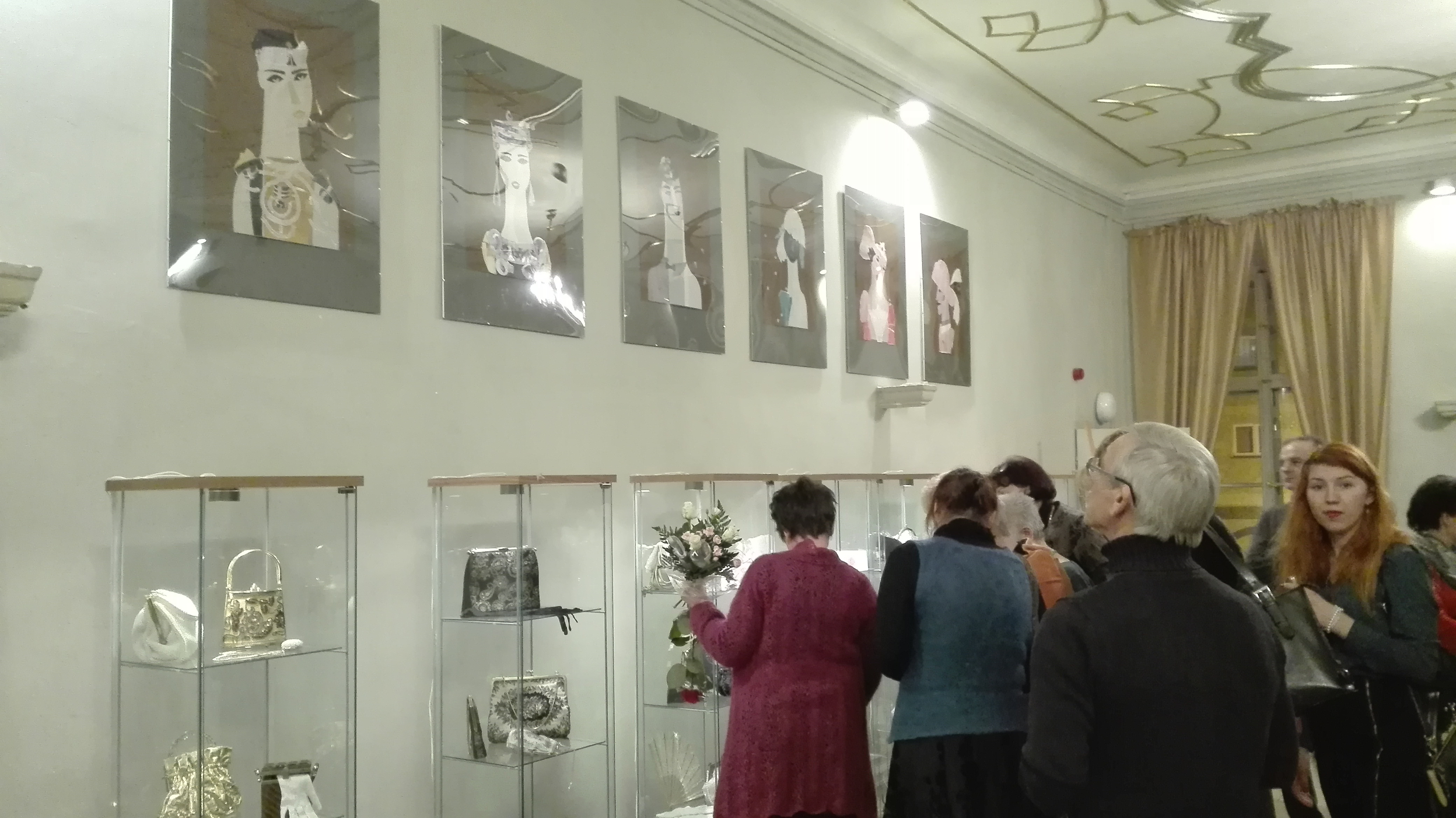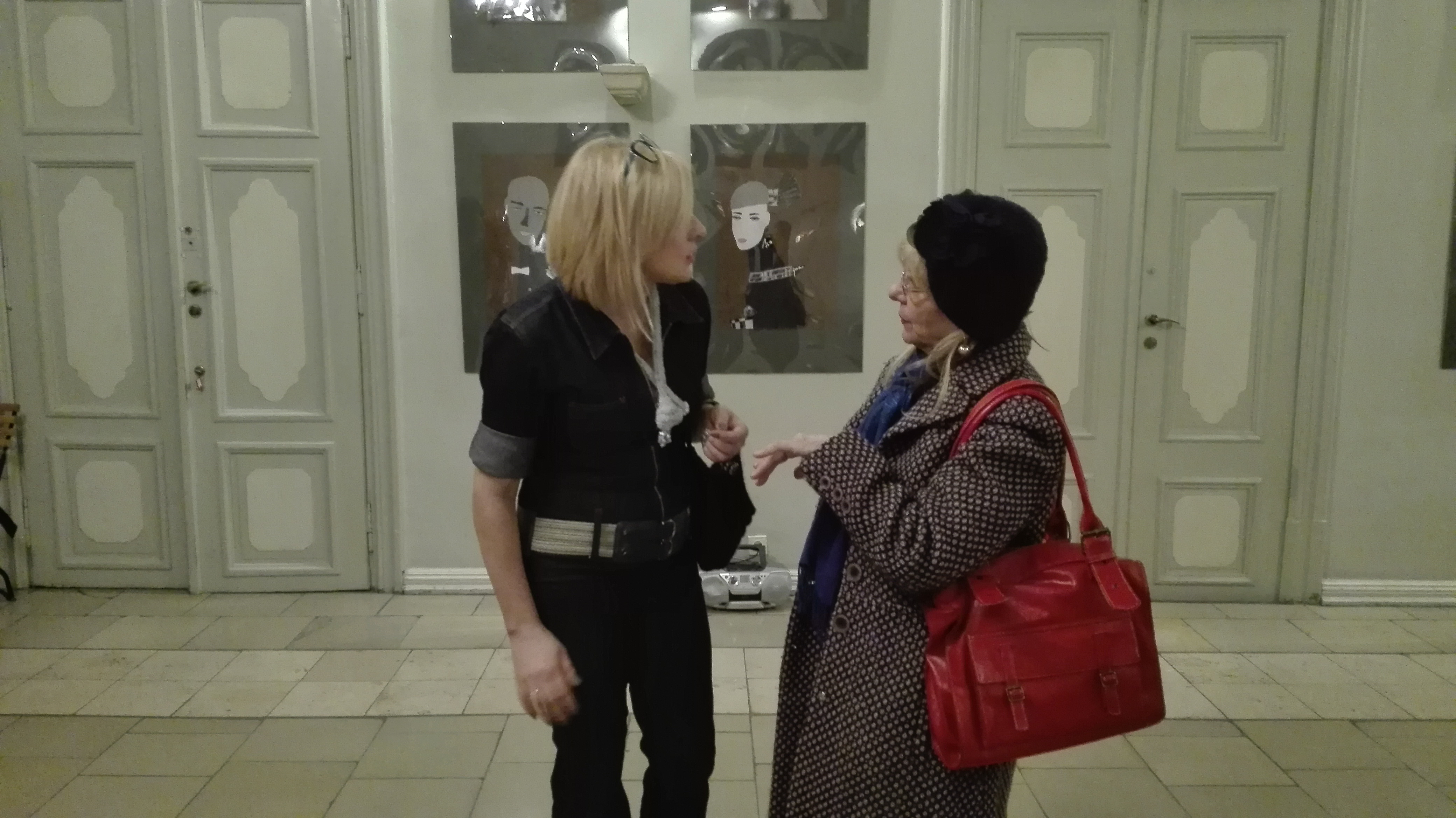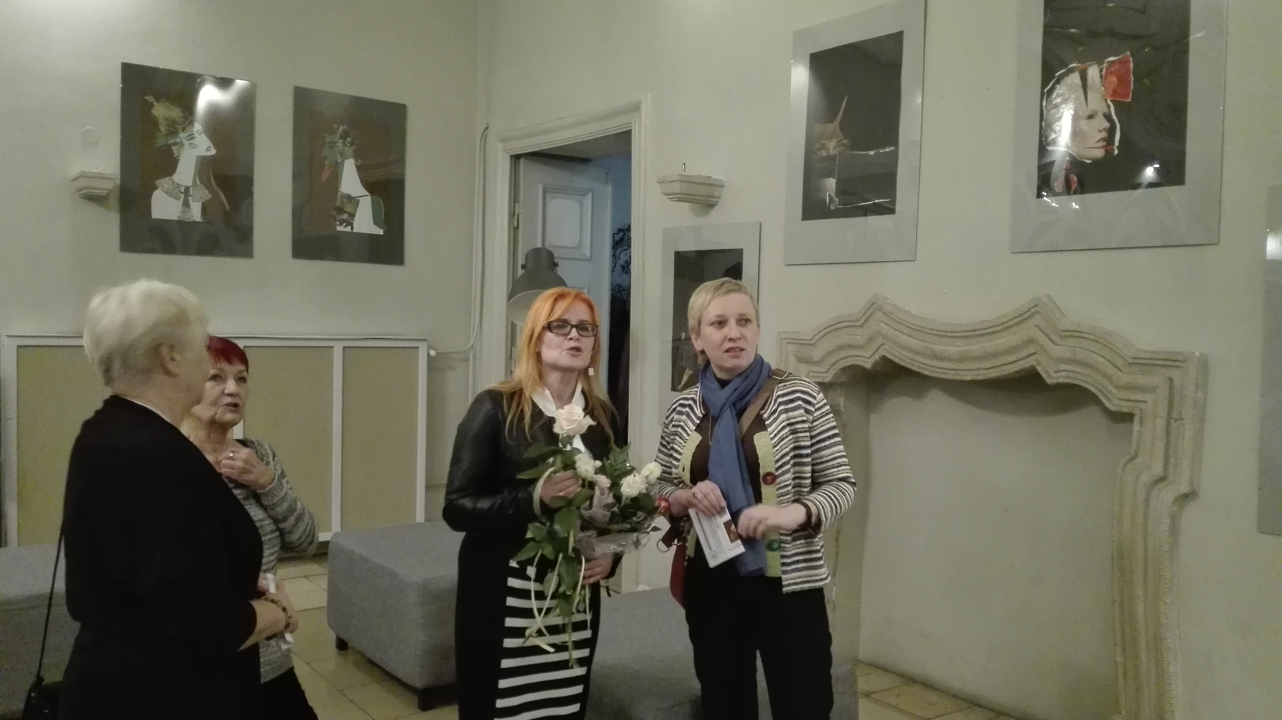 Wystawie torebek towarzyszą wywieszone na ścianie teatralnego holu kolaże. Ich autorką jest Urszula Kwiatkowska-Sznerch. Obrazy zostały powieszone według cyklów. Jeden z nich to „Czarne Anioły”, do których autorka użyła fotografii. Drugi cykl to „Bibliotekarki”, które przedstawiają cztery typy osobowości pań z biblioteki. Ostatni i najnowszy, a także najliczniejszy to „Dialogi”.
