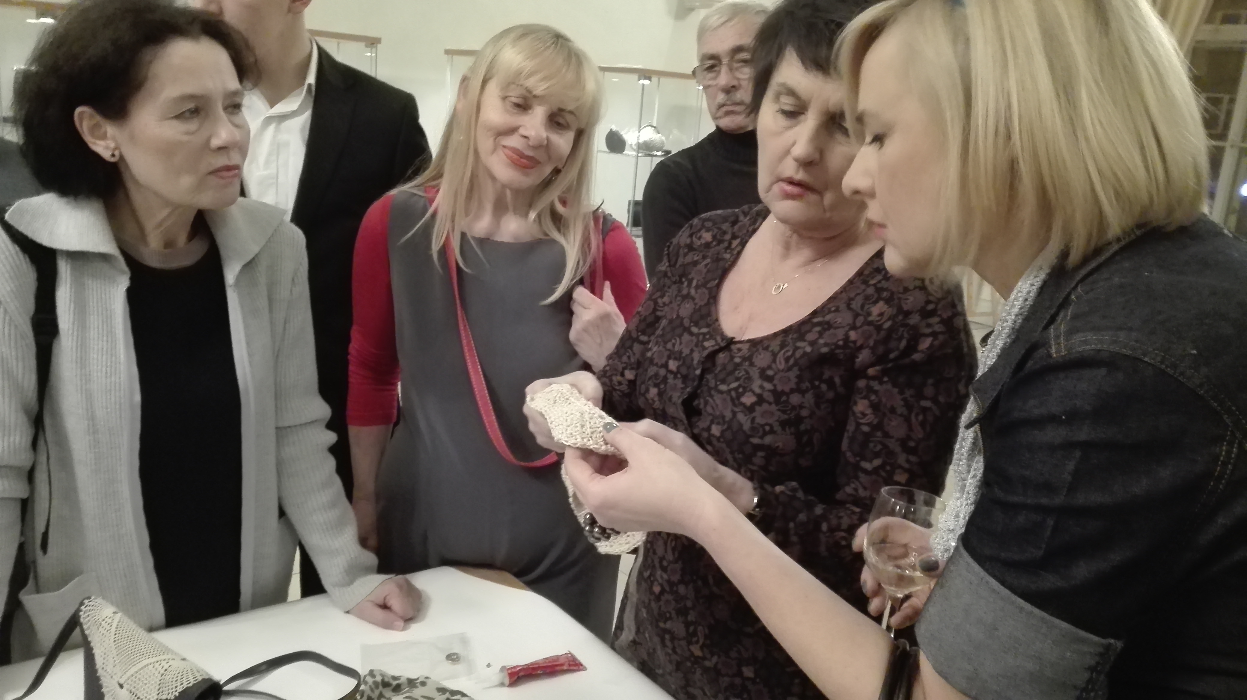 Po otwarciu wystawy odbyły się warsztaty. Artystki pokazywały jak zrobić torebkę oraz kolaż.