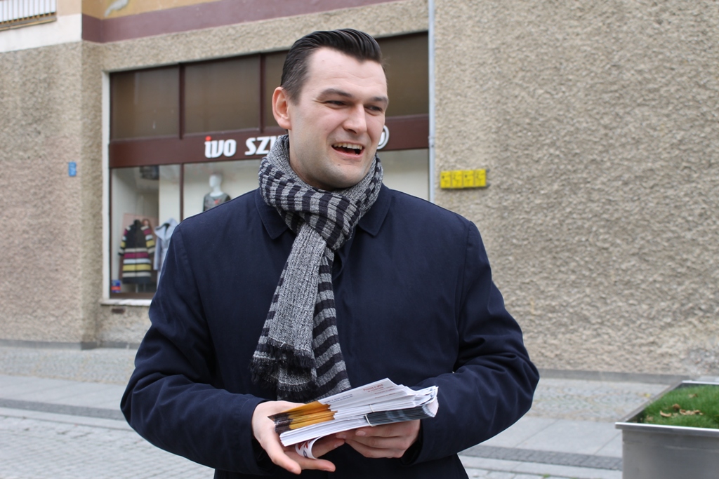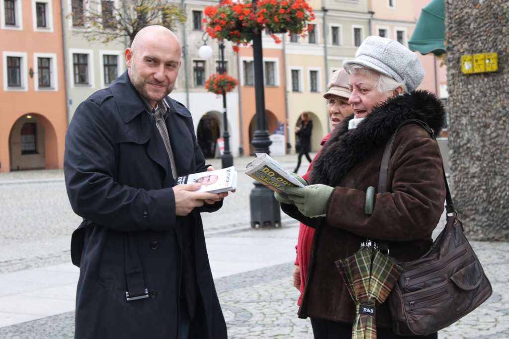 Kiedy Piotr Borys rozdawał na legnickim Rynku breloczki i popularne batony, kilka metrów dalej z ulotkami chodzili jaworzanin Krzysztof Detyna z komitetu Kukiz `15 oraz Jacek Baczyński z Prawa i Sprawiedliwości. Panowie nie wchodzili sobie w paradę.