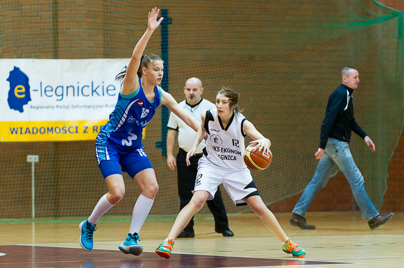 Mimo to legniczanki mogły wygrać z lokalnym rywalem. Dzięki dobrej postawie w obronie i skuteczności Joanny Plizgi oraz Katarzyny Starzak na przerwę schodziły wygrywając 39:32. Trzecią kwartę Ekonom rozpoczął wyśmienicie, zdobywając osiem punktów z rzędu. Wygrywał 47:32 i wydawało się, że komplet punktów zostanie w Legnicy. Potem jednak to polkowiczanki zdobyły szesnaście punktów z rzędu, co pozwoliło im złapać wiatr w żagle. Dobrej gry już nie odpuściły do końca i ostatecznie wygrały różnicą dziewięciu punktów.