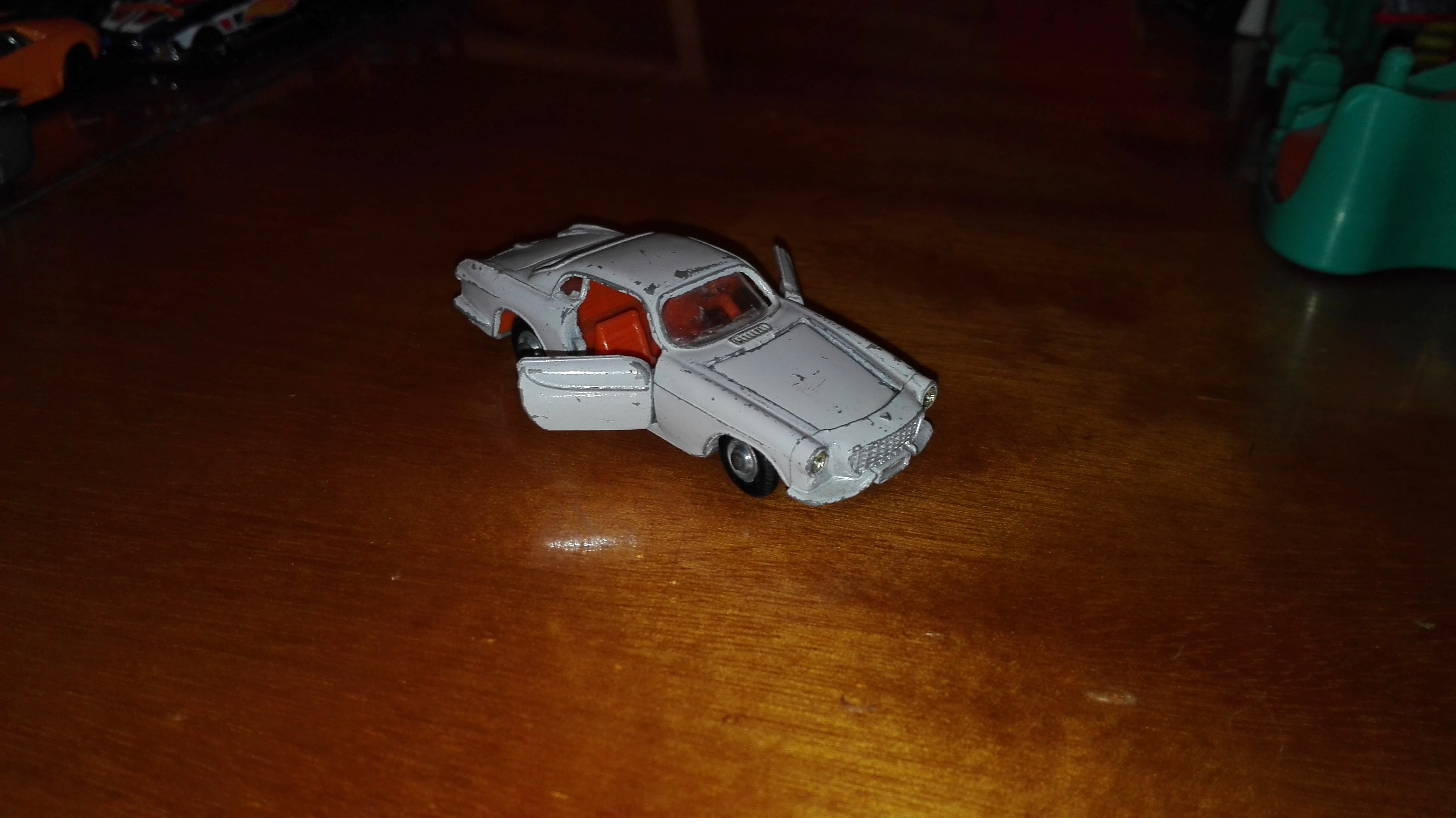 – To jest samochód produkowany w latach sześćdziesiątych, razem z tym modelem produkowano resoraki. Światła ma zrobione z cekinów. Wygrzebaliśmy go z synem na giełdzie staroci – mówi pan Tomasz, ojciec Łukasza.