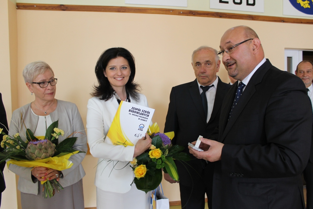 Spotkania z młodzieżą rozpoczęły się od wizyty w Zespole Szkół Budowlanych im. Wojska Polskiego w Legnicy. Tutaj delegacja – składająca się ze wspomnianej wiceminister oraz wiceprezydent miasta Doroty Purgal i wiceprezesa Legnickiej Specjalnej Strefy Ekonomicznej, Andrzeja Niemca – nie ukrywała zadowolenia, że w mieście ocalało wiele szkół o charakterze technicznym. Wszyscy gratulowali uczniom takiego wyboru nauki, która w przyszłości daje im konkretny zawód i zdecydowanie łatwiejsze zdobycie zatrudnienia. W tzw. budowlance wyróżniono uczniów i ich rodziców: Krystiana Drożdża, Justynę Szymaniuk, Paulinę Śliwkowską, Daniela Krasowskiego, Michała Królikiewicza, Aleksandrę Falutę oraz Natalię Kwokę.