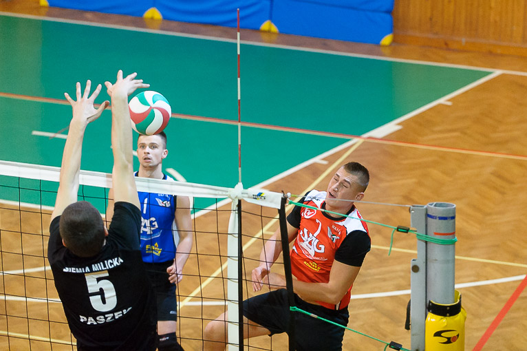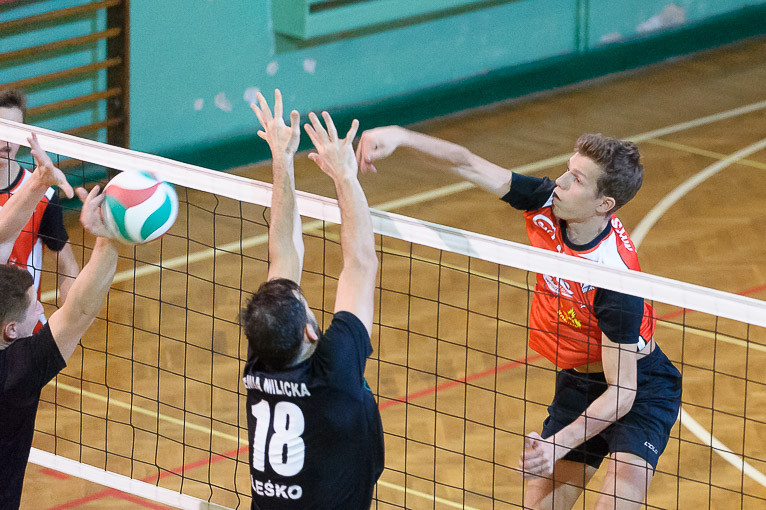 Z wyżej notowanym rywalem zmierzyli się także legniccy siatkarze. Legniczanie podejmowali MUKS Ziemia Milicka. Gospodarze udanie rozpoczęli mecz i po pierwszym secie prowadzili 1:0. Dwie kolejne odsłony to już zdecydowana przewaga ekipy gości, którzy wygrali dwa razy do 15. Najwięcej emocji dostarczyła czwarta partia, która na przewagi wygrał MUKS.