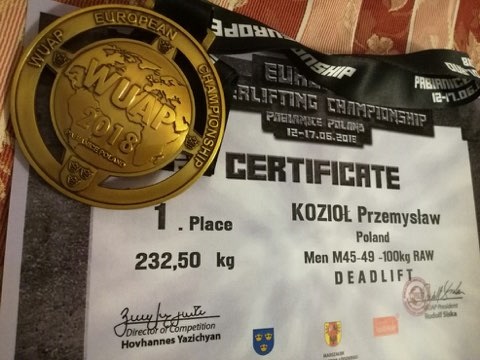 Podinspektor Przemysław Kozioł, naczelnik sztabu policji Komendy Miejskiej Policji w Legnicy zdobył złoty medal na Mistrzostwach Europy w martwym ciągu w kategorii 100 kg Masters. Zawody rozgrywane były od 12 do 17 czerwca 2018 roku w Pabianicach i wzięło w nich udział ponad 400 zawodników z całej Europy. Przemysław Kozioł podczas finałów podniósł ponad 232 kilogramów w martwym ciągu. Swoim wyczynem pobił wszystkich konkurentów i został Mistrzem Europy.