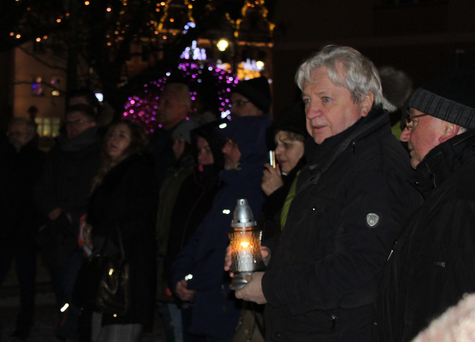Legniczanie spotkali się przy pomniku Jana Pawła II o godz. 18, by zapalić znicze ku pamięci Pawła Adamowicza. Kilkadziesiąt osób w zadumie wysłuchało słów duchownego, by po chwili wspólnie modlić się za zmarłego prezydenta Gdańska. Zebrani nie kryli poruszenia. Zanim tragiczna wieść dotarła do Legnicy, prezydent Tadeusz Krzakowski takimi oto słowami wspierał kolegę samorządowca za pośrednictwem mediów społecznościowych: