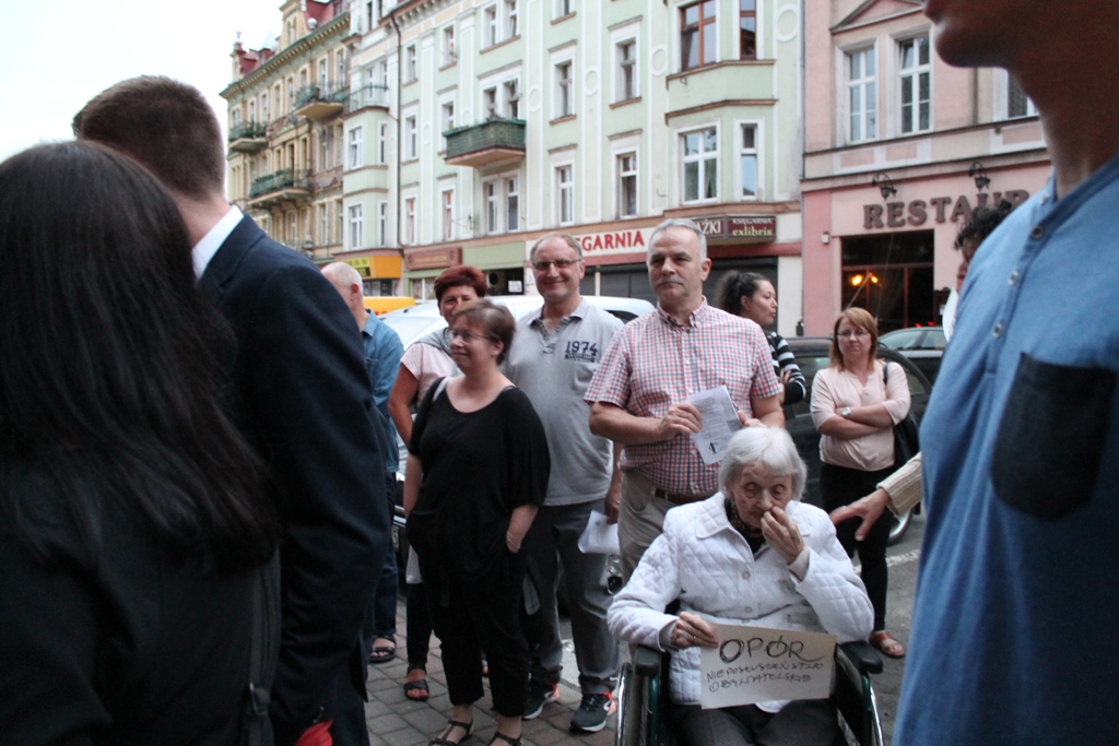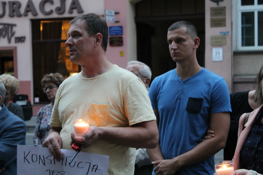Wśród uczestników legnickiego protestu znalazł się prokurator Piotr Wójtowicz, który przed wprowadzeniem „dobrej zmiany” był szefem Prokuratury Okręgowej w Legnicy. I choć jest w stopniu prokuratora apelacyjnego, półtora miesiąca temu został przez swego następcę zdegradowany i oddelegowany do pracy w Prokuraturze Rejonowej w Legnicy.