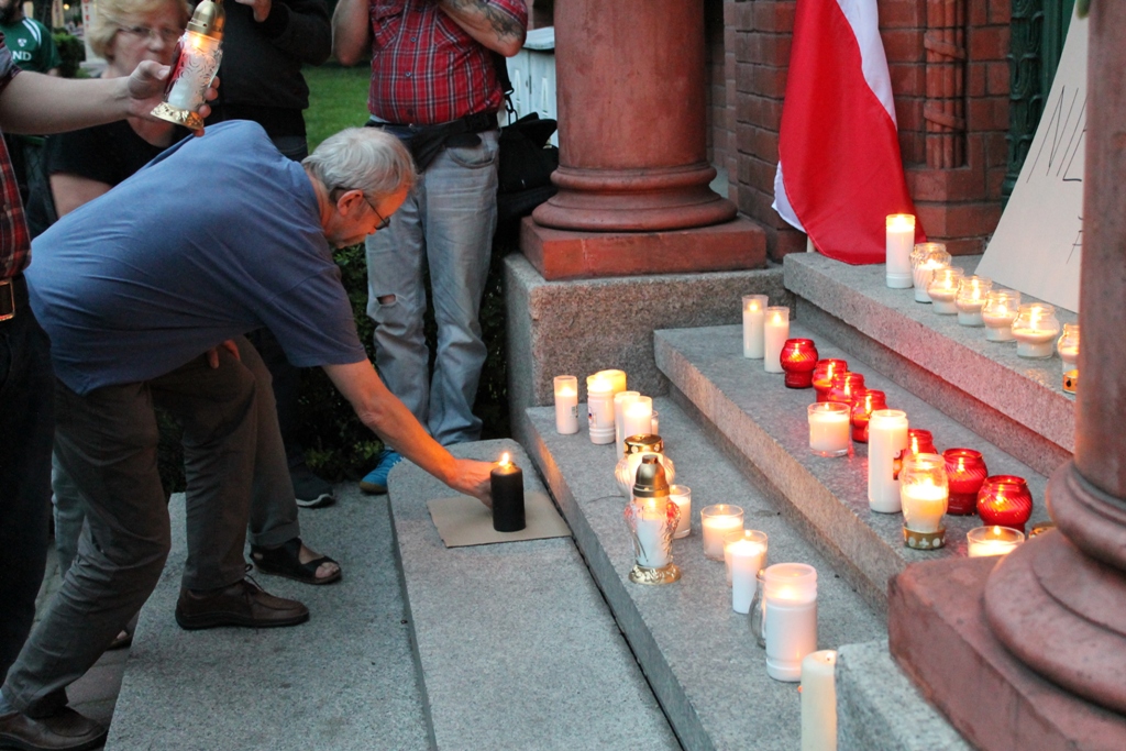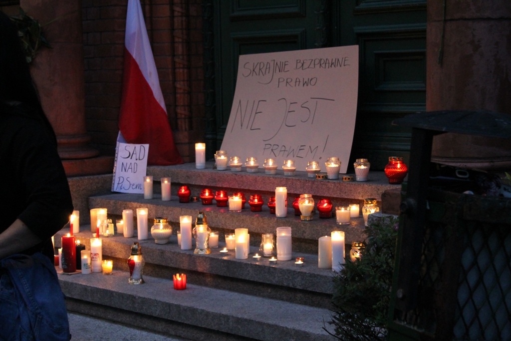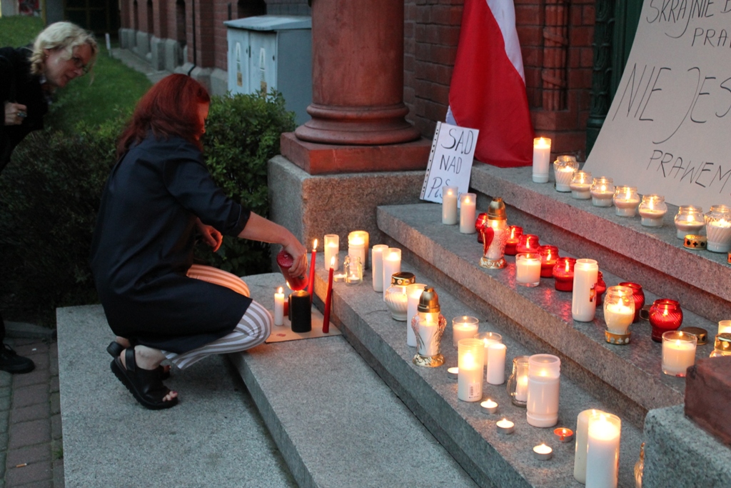 Zanim na schodach prowadzących do siedziby sądu zapalono świece i znicze, wspomniano o czwórce dolnośląskich posłów, którzy byli prekursorami zmian w sądownictwie. Wśród nich jest legnicka parlamentarzystka Ewa Szymańska, którą już wpisano na „Listę hańby narodowej”.