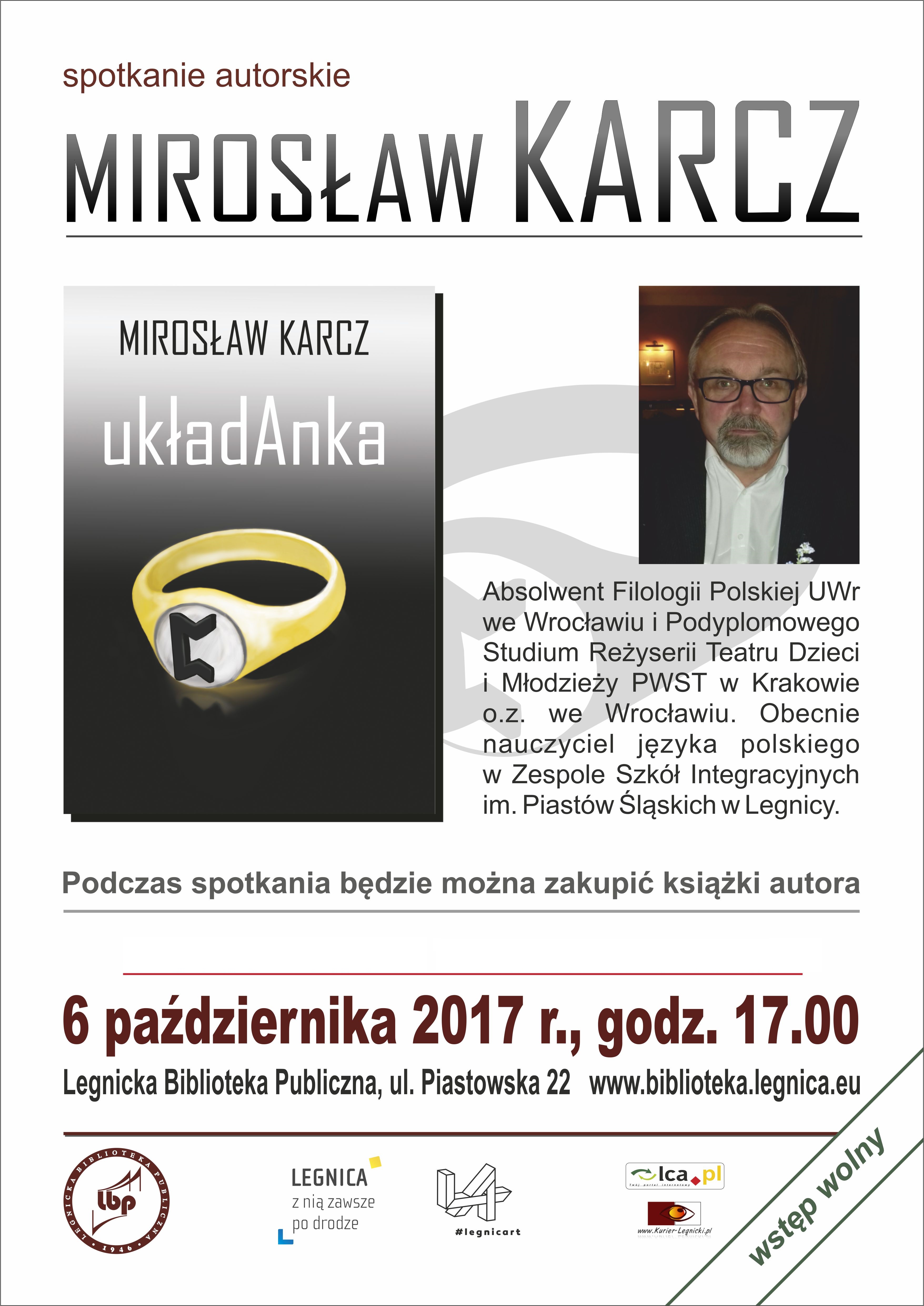 Legnicka Biblioteka Publiczna przy ulicy Piastowskiej 22 zaprasza na spotkanie z Mirosławem Karczem – autorem debiutanckiej powieści pt. „UkadAnka”. Wieczór autorski odbędzie się w piątek, 6 października, o godz. 18.