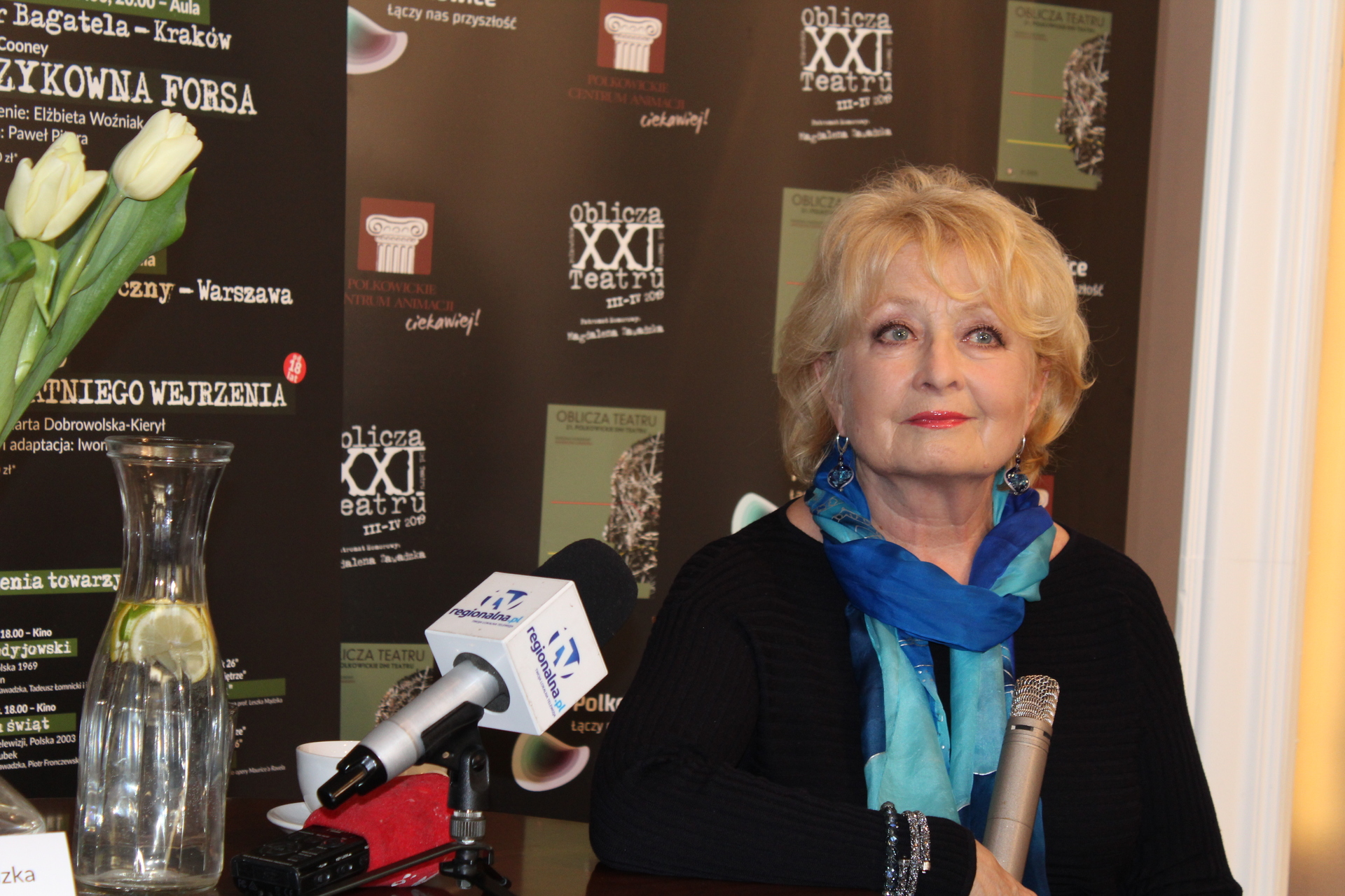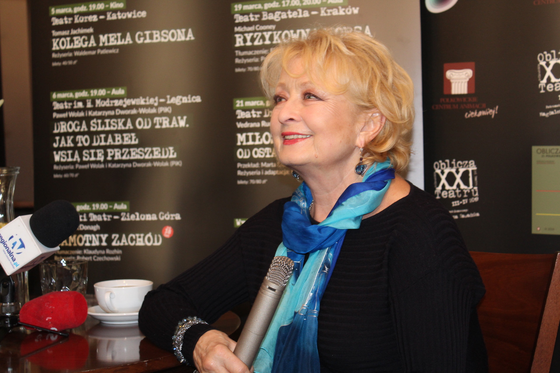 – Ani chwili. Sprawdziłam tylko terminy, bo to było najistotniejsze: czy będę mogła wyjechać? To jest jednak, z perspektywy Warszawy, bardzo daleko. Musiałam obliczyć, czy uda mi się wskoczyć na chwilę chociażby, ale udało mi się wskoczyć na dwa dni w tym moim terminarzu. Od razu, powiedziałam, że już. Ewenementem jest to, że małe miasteczko, liczące 20 tysięcy mieszkańców, potrafi ściągnąć swoim entuzjazmem, swoim profesjonalizmem w organizacji teatry z odległych, dużych miast Polski. To wynika z tego, że ludzie, którzy tu mieszkają chcą czegoś więcej od życia. I mało tego, wszyscy są zaszczyceni z powodu tego zaproszenia, tak jak ja jestem zaszczycona faktem, że zostałam poproszona o objęcie patronatu nad festiwalem. Usłyszałam już tu, że jestem patronem i mistrzem. Bardzo mi miło słyszeć to pod swoim adresem, ale trochę mnie tak peszą takie bardzo wysokie oceny. Zawsze uważam za mistrzów lepszych od siebie, bardziej zasłużonych, więc ciągle mam poczucie, że muszę gdzieś do tego mistrzostwa dopiero doskakiwać, ale jak bocian żabę, łyknęłam te komplementy.