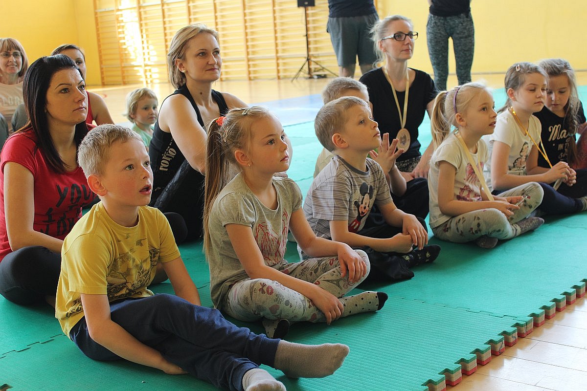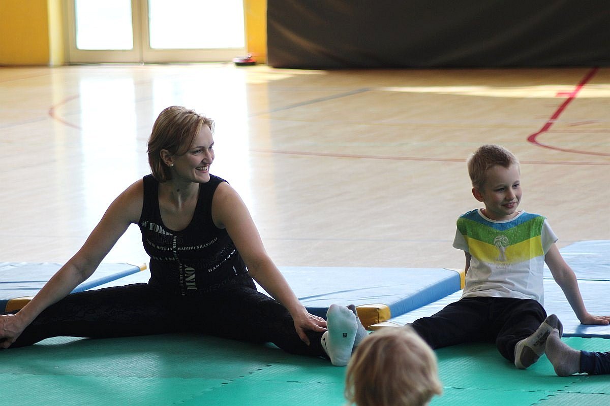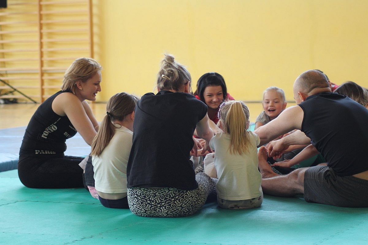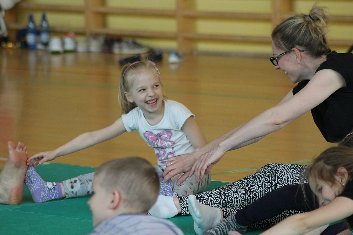 Największą frajdę dzisiejsze zajęcia sprawiły dzieciom. Julka, choć nie mogła z nimi ćwiczyć, nie potrafiła usiedzieć na miejscu. Wszędzie było jej pełno. Radosna dziewczynka zaglądała do drugiej sali, w której jogę ćwiczyli bardziej doświadczeni, a także grała w piłkę.
