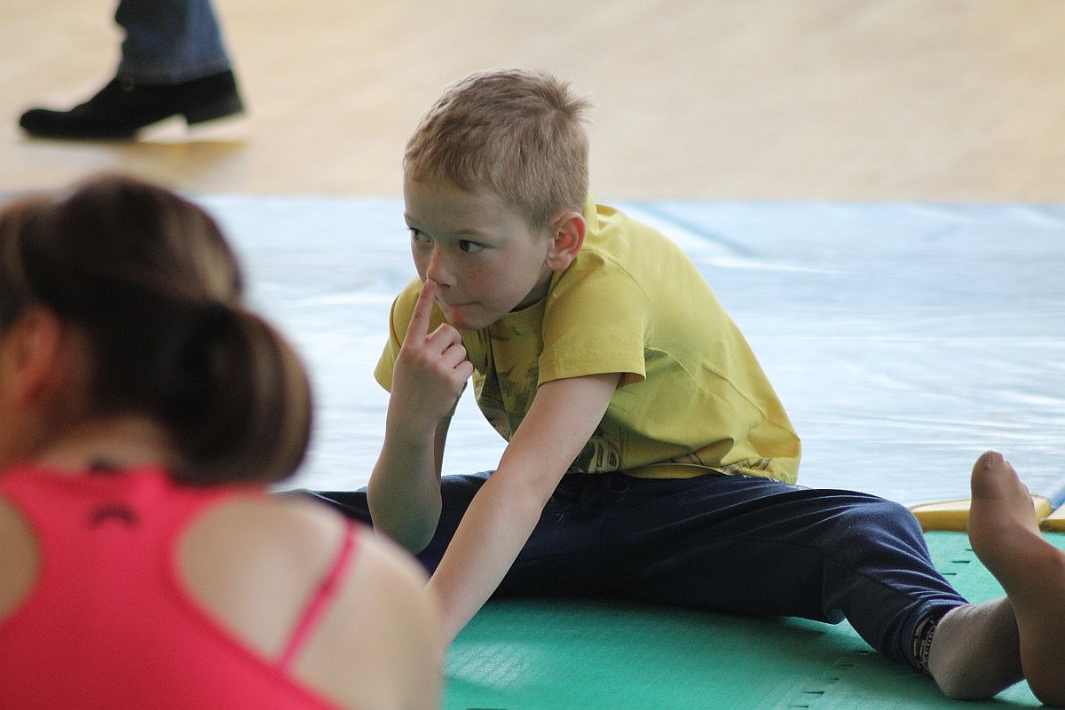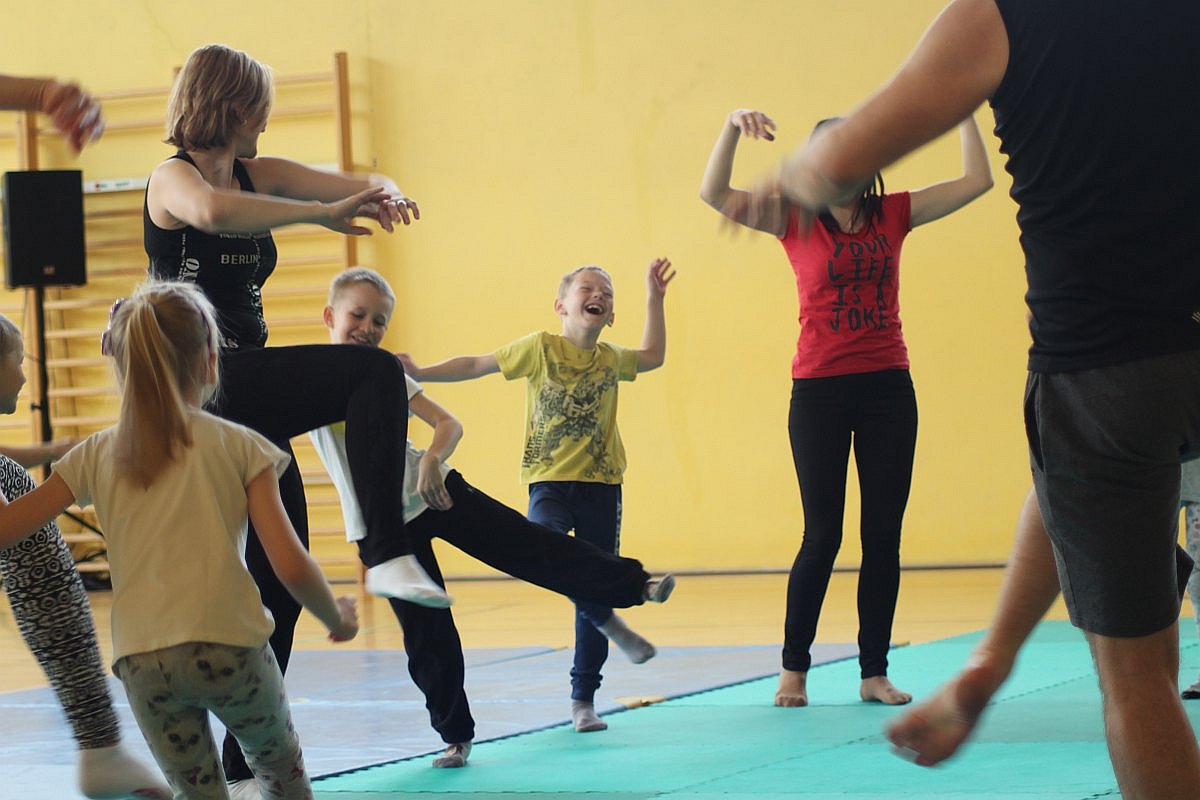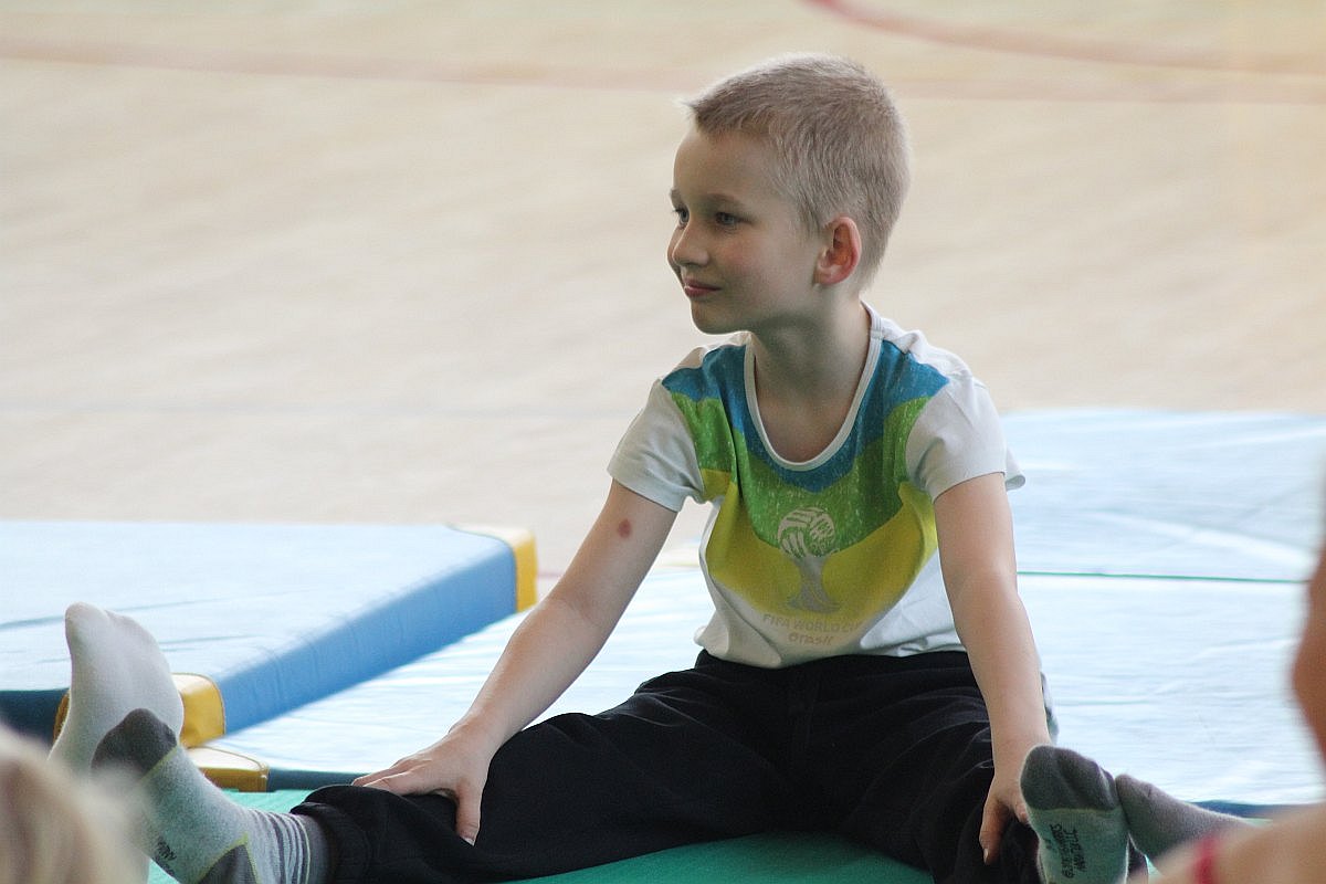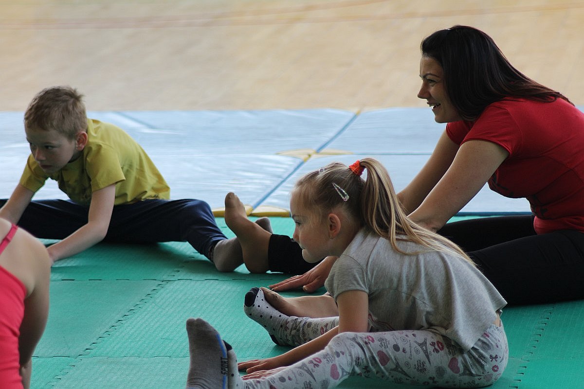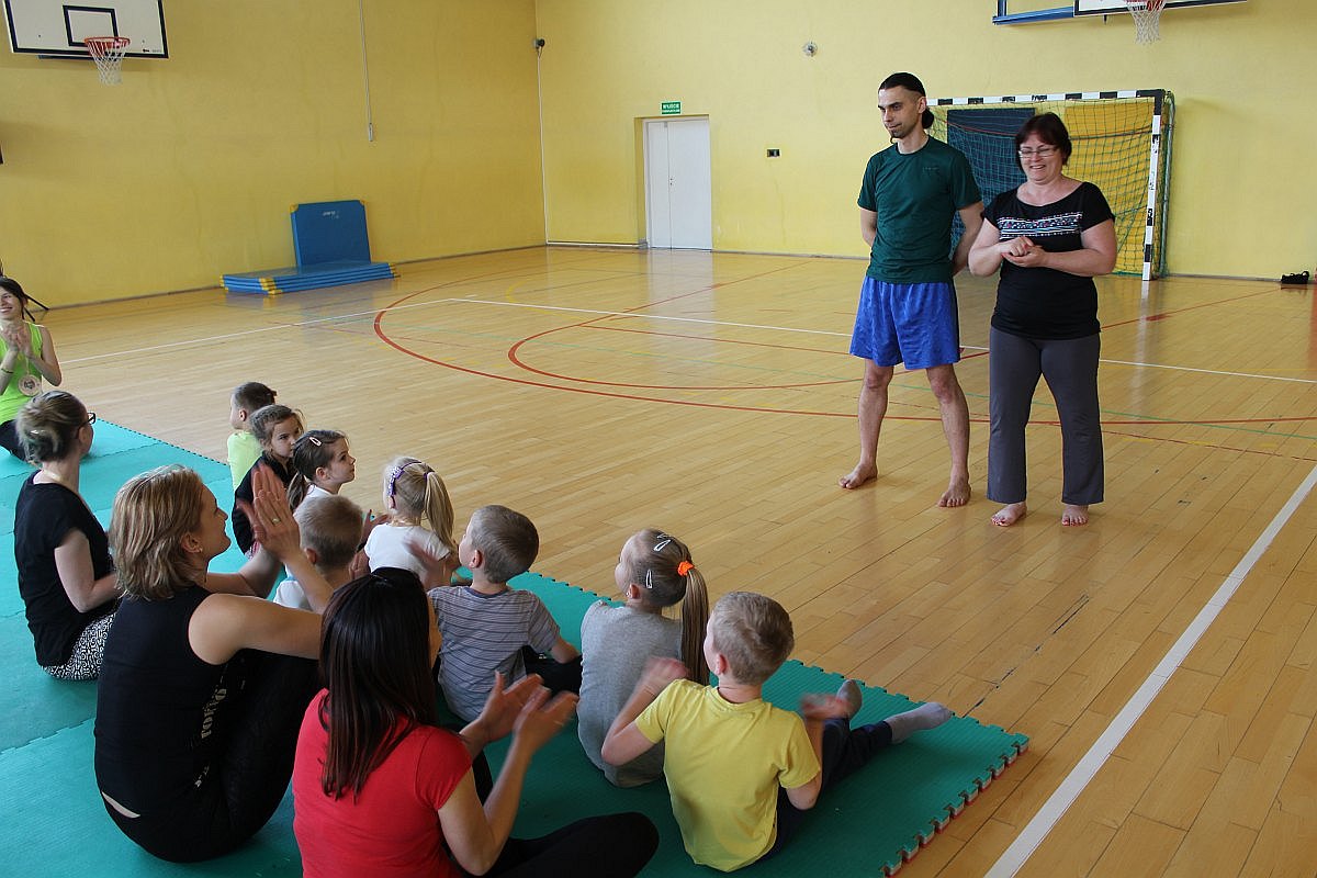 Największą frajdę dzisiejsze zajęcia sprawiły dzieciom. Julka, choć nie mogła z nimi ćwiczyć, nie potrafiła usiedzieć na miejscu. Wszędzie było jej pełno. Radosna dziewczynka zaglądała do drugiej sali, w której jogę ćwiczyli bardziej doświadczeni, a także grała w piłkę.