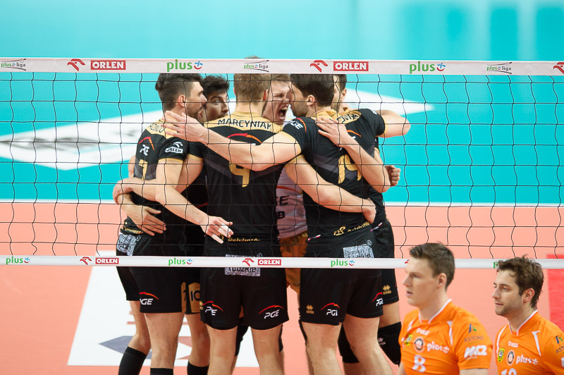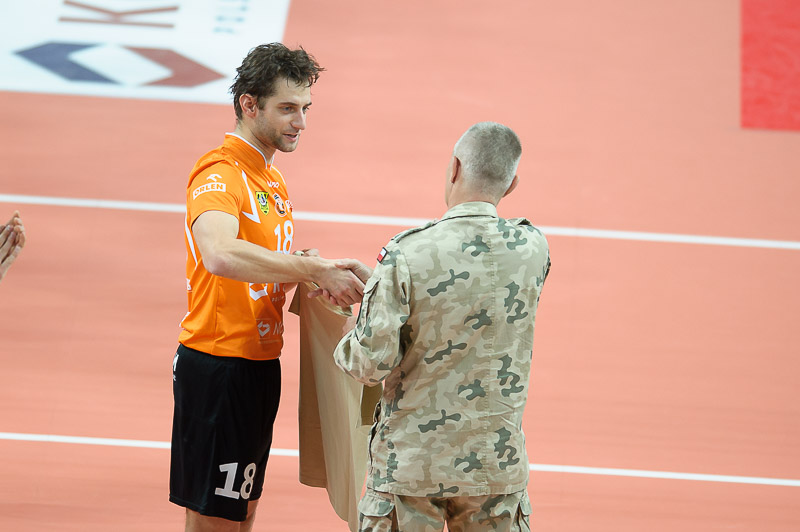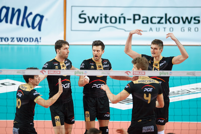 Skra: Marciniak (4), Kłos (8), Conte (20), Uriarte (2), Winiarski (14), Gromadowski (22), Piechocki (libero) oraz Milczarek (libero), Janusz i Marechal (1)