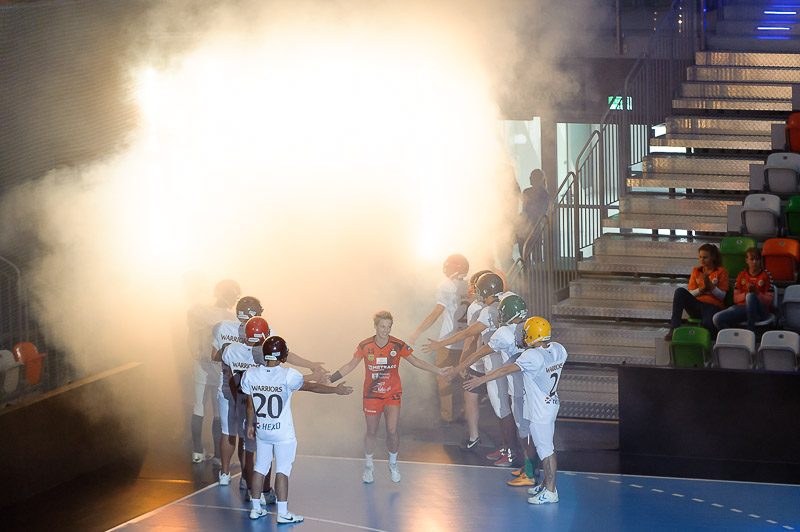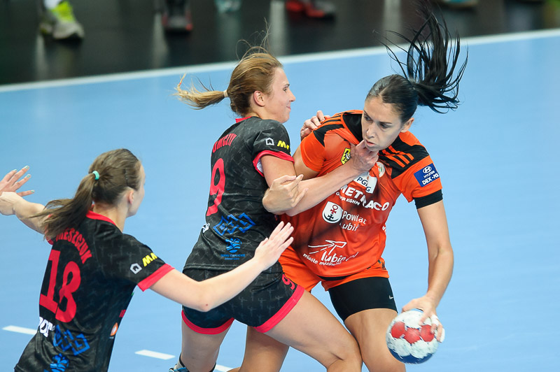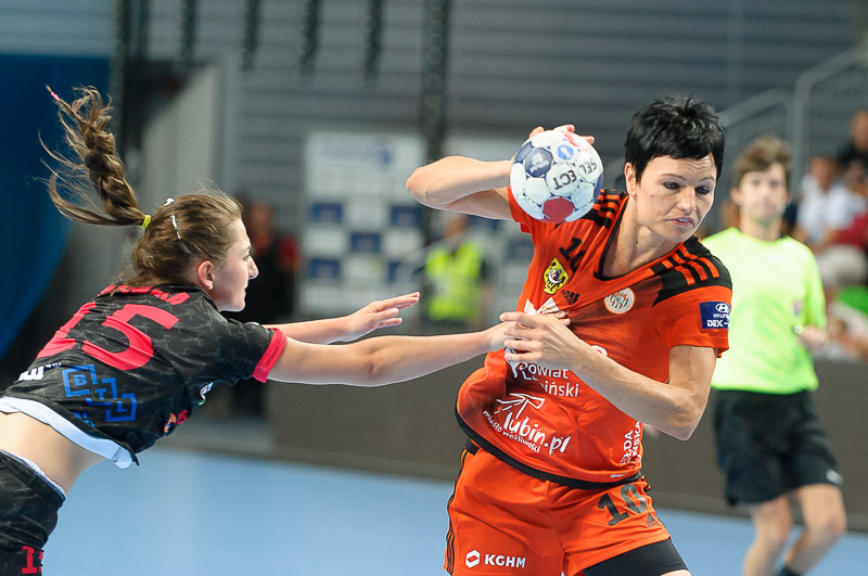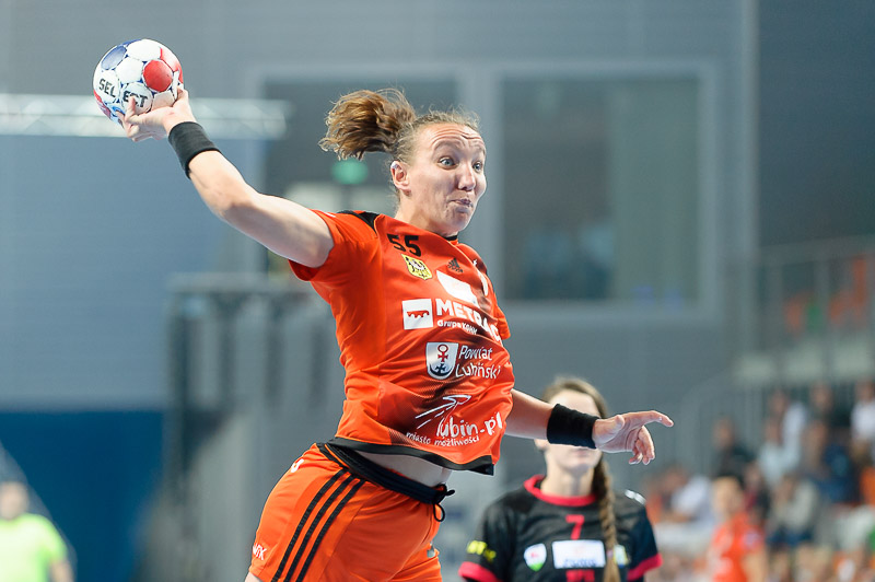 Premierowe spotkanie lubinianki rozpoczęły nieco rozkojarzone. Wykorzystały to przyjezdne, zdobywając trzy bramki z rzędu. Szybkie 0:3 podziałało na miedziowe jak zimny prysznic. Na efekt nie trzeba było długo czekać. Podrażnione lubinianki w 10. minucie doprowadziły do remisu po 4, a autorką trzech bramek była Joanna Obrusiewicz. Kolejne udane akcje, połączone z dobrymi interwencjami Moniki Wąż sprawiły, że po kwadransie gry mieliśmy 7:4. Z jeleniogórskiej ekipy po udanym początku i kolejnych ciosach uszło powietrze. Na dziesięć minut przed końcem pierwszej połowy miedziowe wygrywały 11:6. Do przerwy podopieczne Bożeny Karkut wygrywały jeszcze wyraźniej, bo 16:9, a na parkiecie brylowało trio Obrusiewicz/Marić/Premović. Nasze rozgrywające do przerwy zdobyły łącznie aż trzynaście bramek.