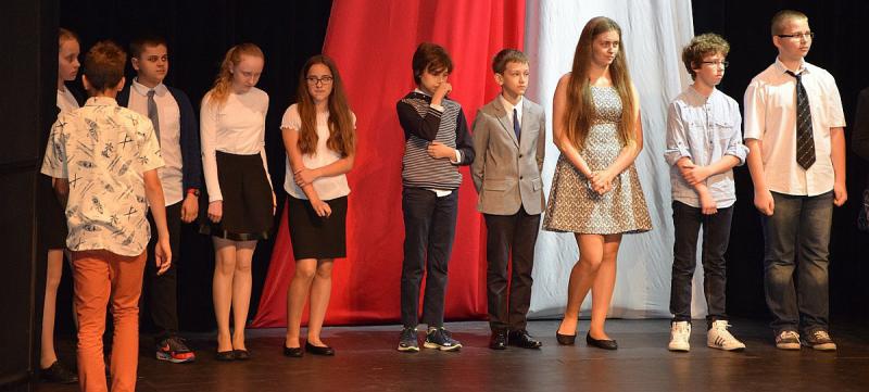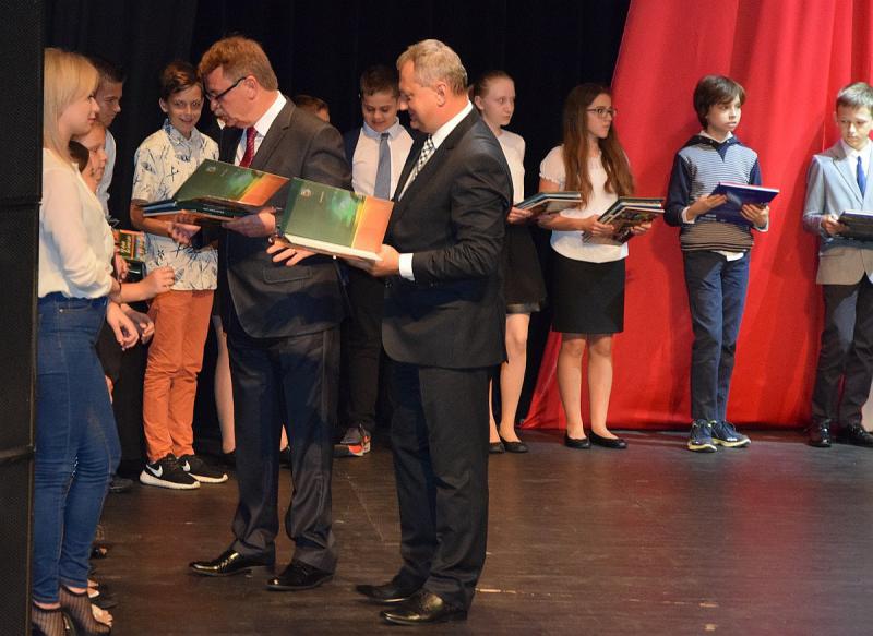 Uczniowie powiatowych i gminnych szkół otrzymali nagrody za najlepsze wyniki w nauce w mijającym roku szkolnym 2014/2015. Uroczystość uświetnił występ lubińskiego Zespołu Piosenki i Tańca Gwarkowie.