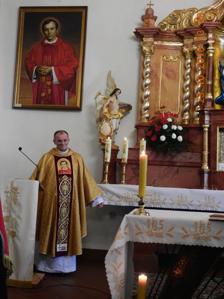 W czasie kazania kapłan nawiązał do życiorysu błogosławionego ks. Popiełuszki. 44 lata temu w tym właśnie kościele, wówczas kapelan ludzi pracy, a dziś Błogosławiony ks. Jerzy, patron NSZZ „Solidarność”, odprawił swoją mszę prymicyjną.