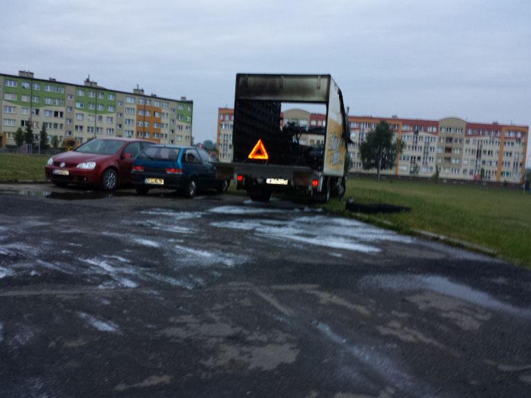 Straż pożarna powiadomiona została o zdarzeniu wczoraj o godzinie 22.25. Ogień objął przód samochodu, głównie kabinę i komorę silnika.