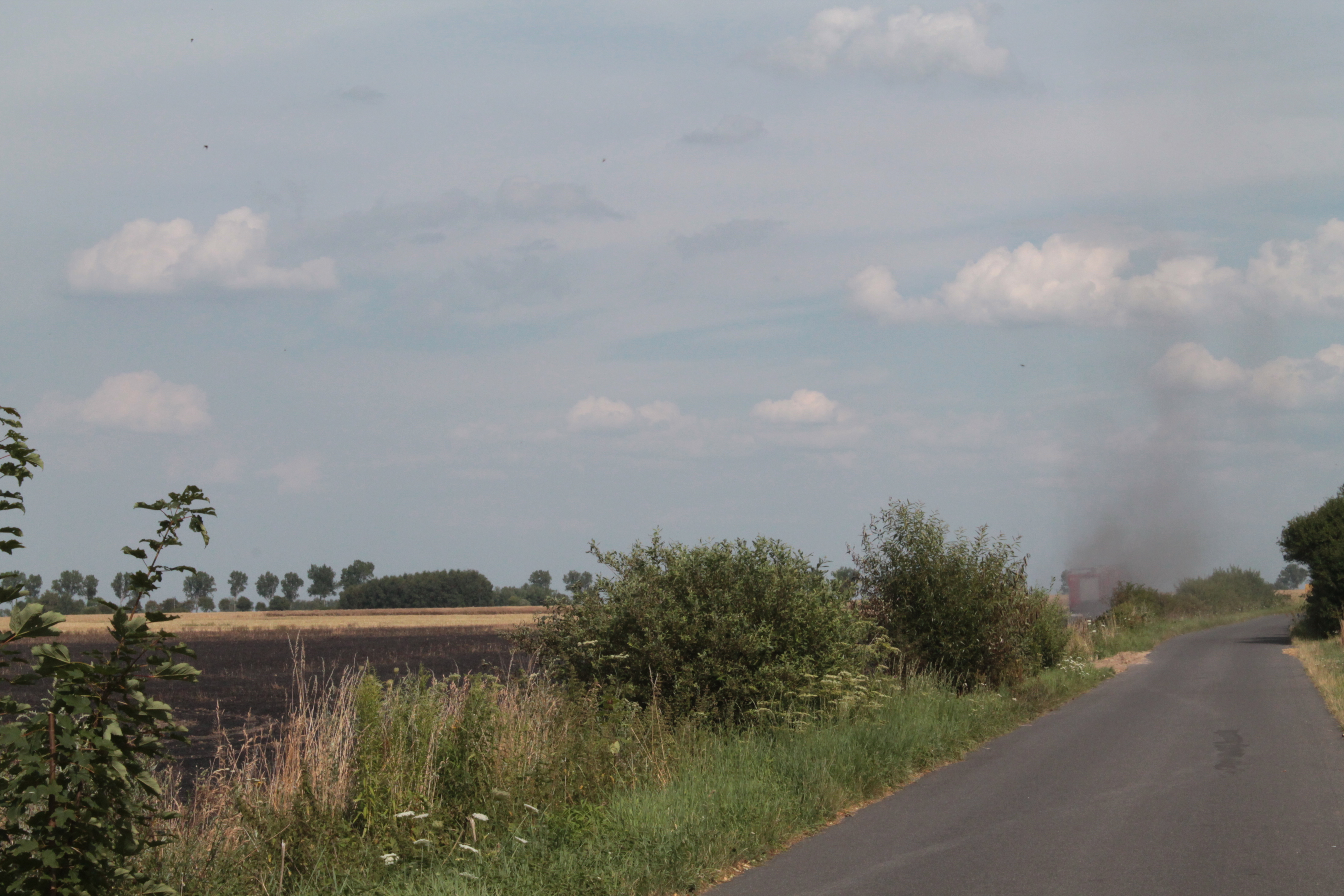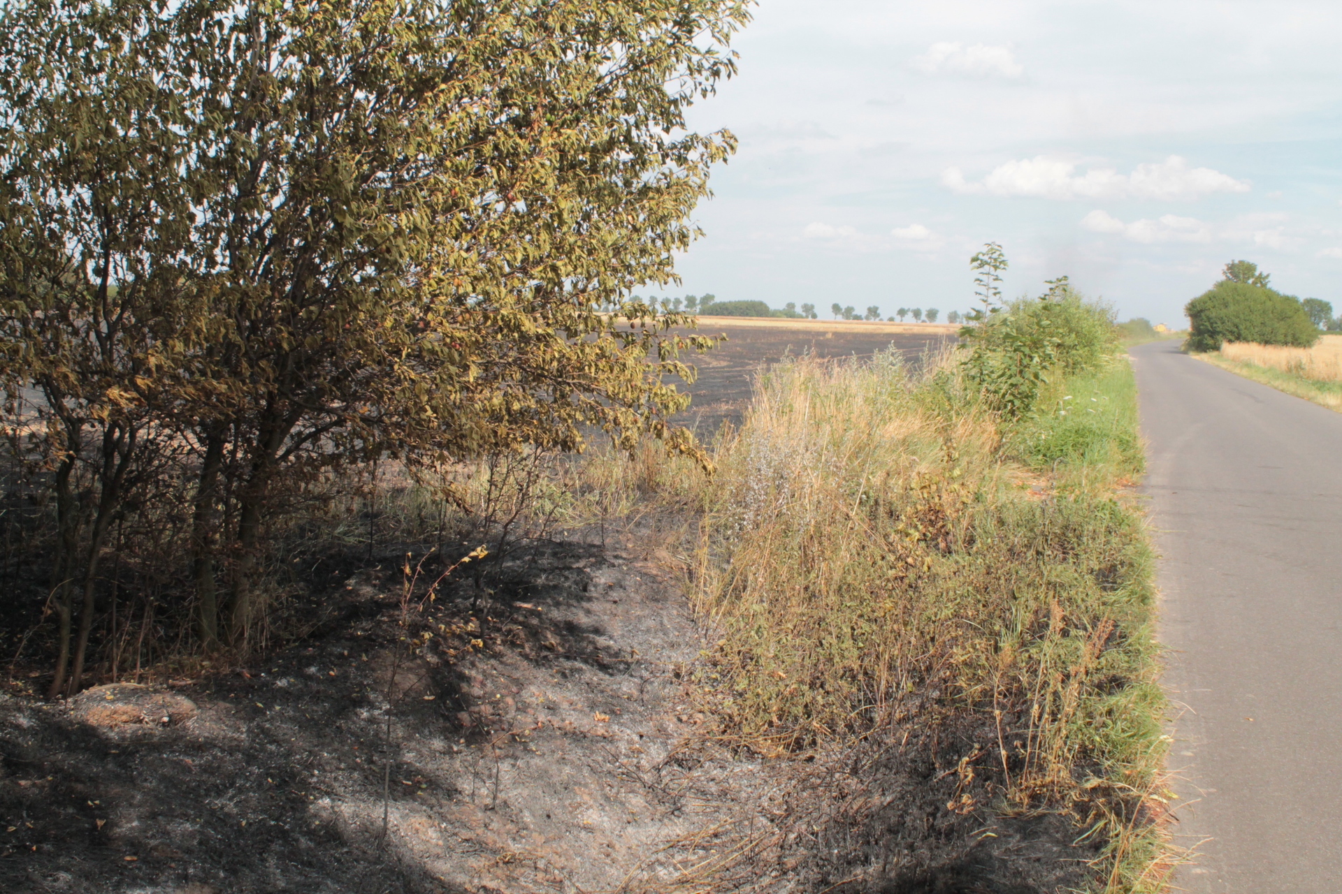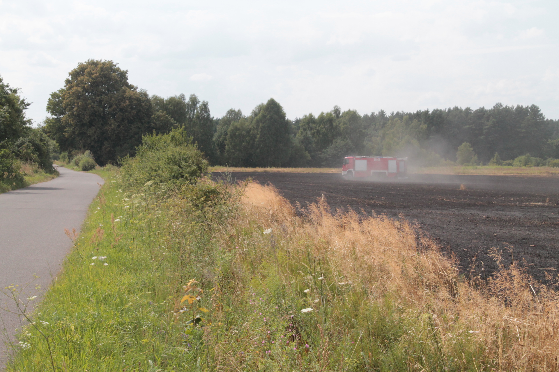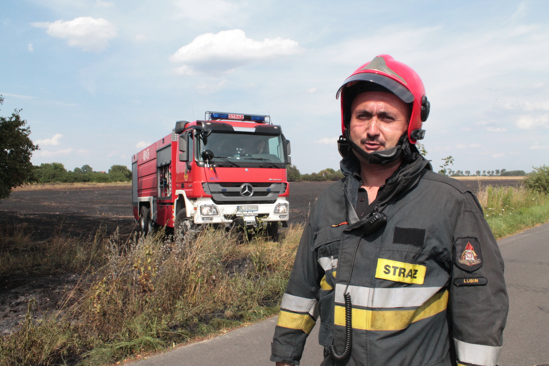 Ogień pojawił się w okolicy, oddalonych o 12 km od Lubina, Gogołowic. – Paliło się zboże – mówi Cezary Olbryś z lubińskiej straży pożarnej. Pożar był spory, bo chmurę dymu było widać z centrum Lubina. Przy takich temperaturach ogień może się szybko rozprzestrzenić, dlatego strażacy wysłali do jego ugaszenia miedzy innymi dromader.