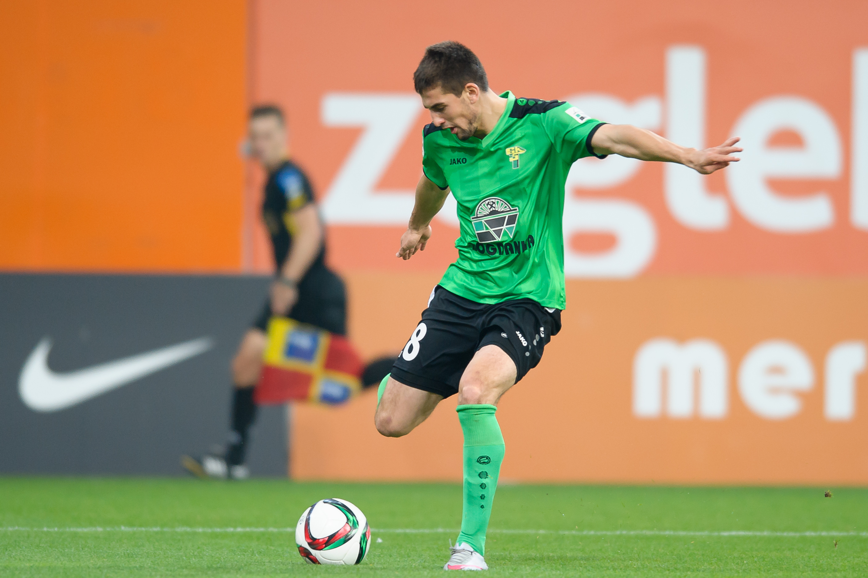 Początek spotkania należał do podopiecznych Piotra Stokowca, którzy przeważali na boisku. w 9. minucie przed pierwszą szansą na bramkę stanął Papadopulos, którego strzał głową trafił w poprzeczkę bramki strzeżonej przez Rodicia. Osiemnaście minut później okazje na gola mieli goście. W sytuacji sam na sam z Forencem stanął Śpiączka, jednak z ostrego kąta nie był w stanie pokonać bramkarza gospodarzy. Do przerwy nie mieliśmy już więcej klarownych sytuacji i do szatni drużyny schodziły bez zdobyczy bramkowej.