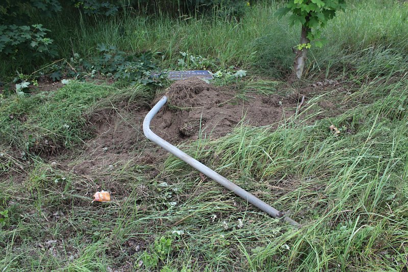 Do wypadku doszło na granicy powiatów polkowickiego i lubińskiego. Auto zmiotło znak drogowy pierwszego z powiatów i zatrzymało się na terenie tego drugiego.