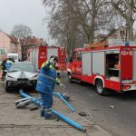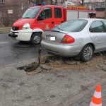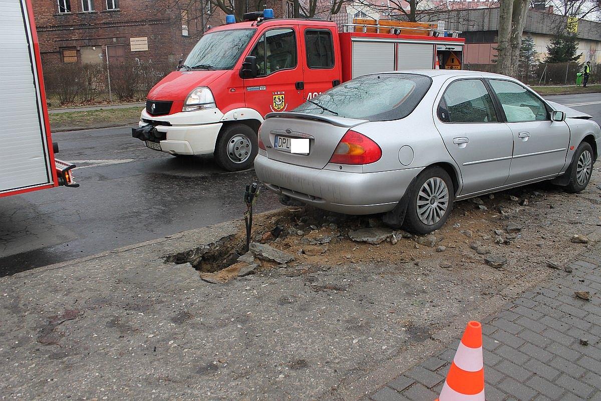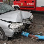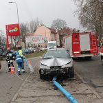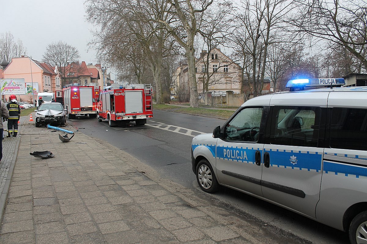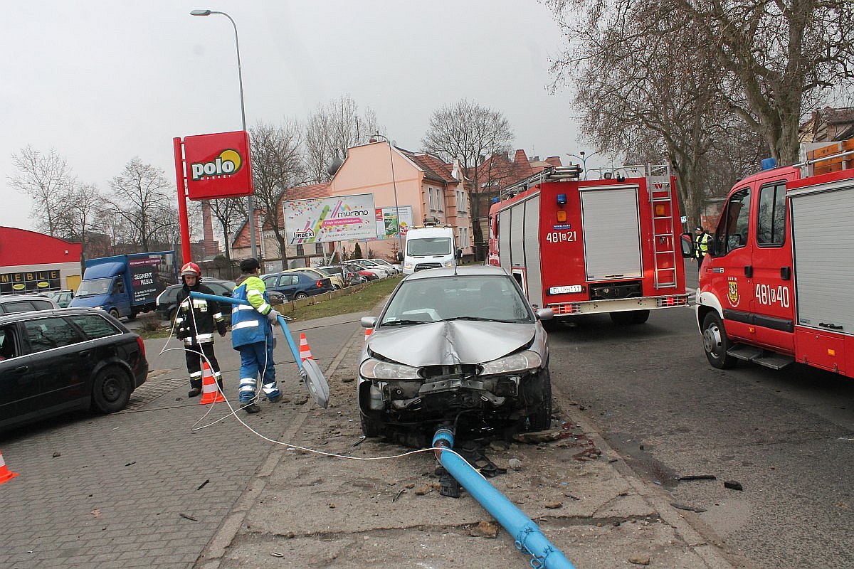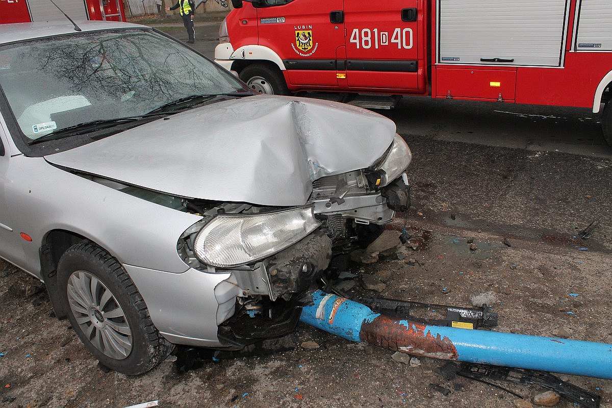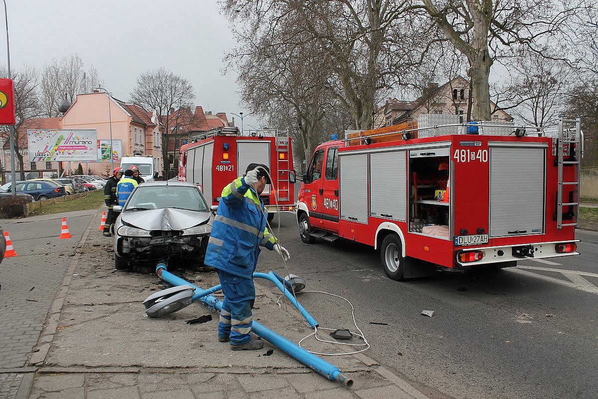 Jak to się stało, nie wiadomo. 29-letni kierowca wjechał na chodnik, uderzył w lampę, przewracając ją i wyrywając z podłoża. Na szczęście w chwili wypadku na chodniku nikogo nie było.