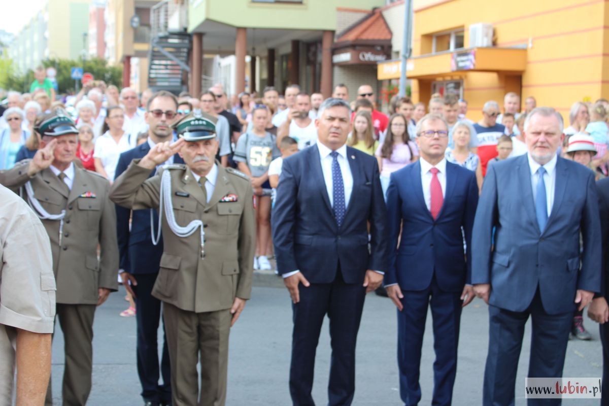 Główne uroczystości z kombatantami na czele odbywały się przy Murze Pamięci w centrum miasta. O oprawę uroczystości przy ul. Pruzi zadbało Starostwo Powiatowe w Lubinie. Harcerze recytowali wiersze i śpiewali żołnierskie piosenki. Tłumnie przybili mieszkańcy słuchali spektaklu w skupieniu i z powagą. Nie zniechęcił ich nawet upał.