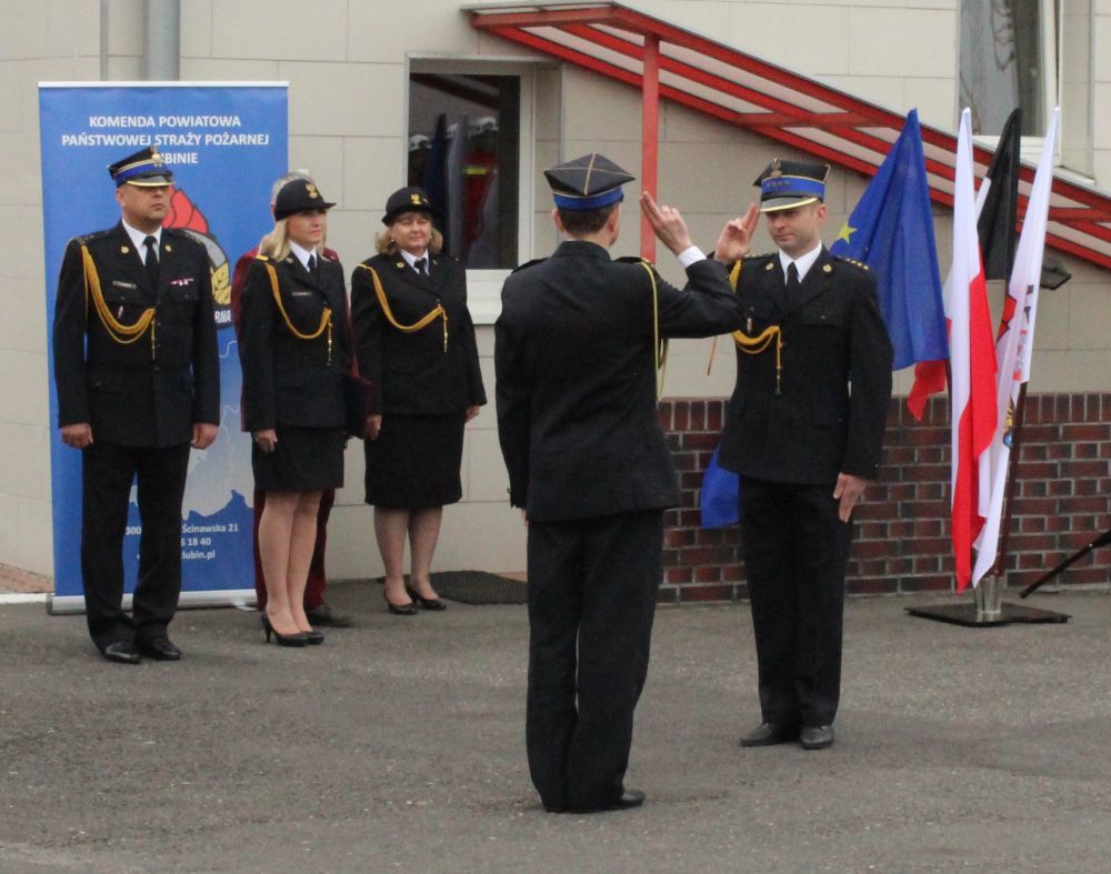 Uroczystości przewodniczył komendant straży pożarnej, Eryk Górski, dumny ze swojej brygady. Sam również został zasłużenie nominowany, jak mówi brygadier Marek Kamiński, zastępca komendanta wojewódzkiego PSP z Wrocławia.