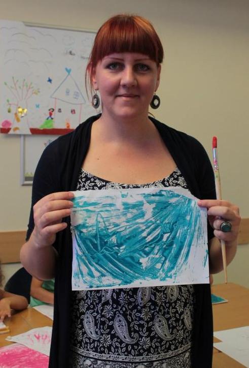 – Monotypia to jedna z technik graficznych. Pierwotnie używa się farby drukarskiej, jednak żeby dostosować poziom trudności do dzieci, używamy farby plakatowej. Polega na tym, że malujemy kartonik, czekamy aż podeschnie i kładziemy na nim kartkę. Następnie ołówkiem, bądź długopisem tworzymy nasz rysunek, który po skończonej pracy delikatnie podnosimy. Efektem końcowym jest grafika – mówi Agnieszka Byszkowska, animatorka prowadząca zajęcia.